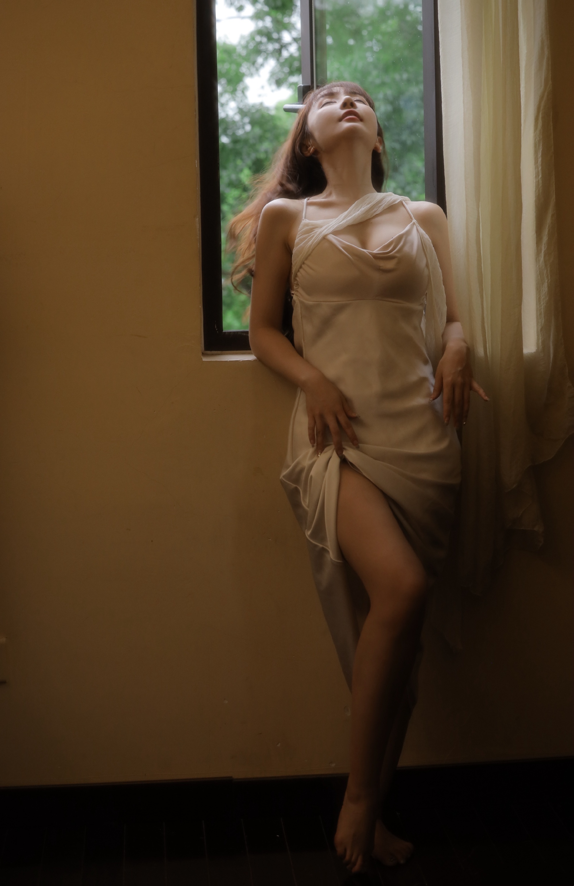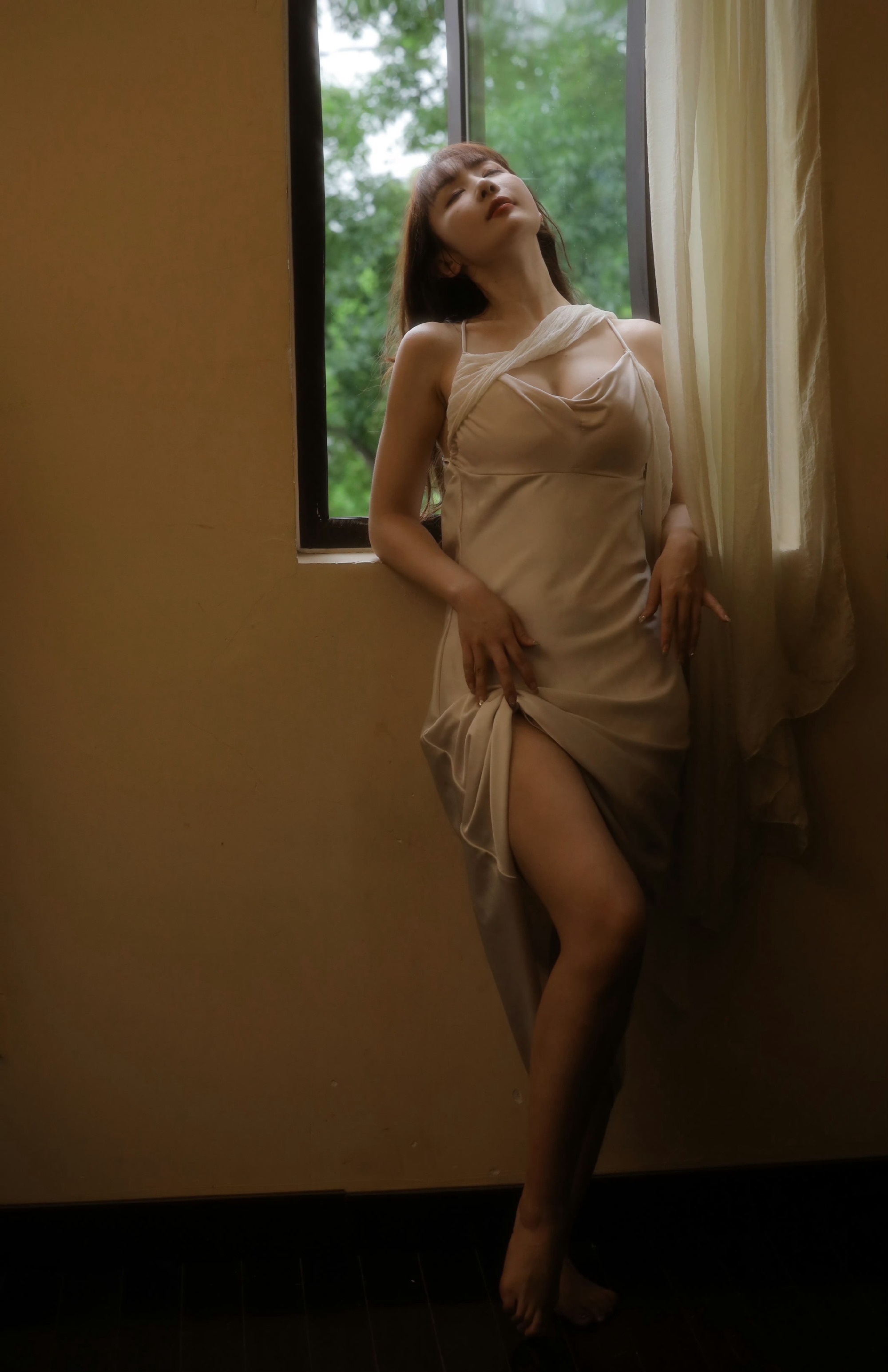 优雅白裙少女,坐在现代客厅,散发迷人魅力。在你眼里,什么样的女人最漂亮什么样的