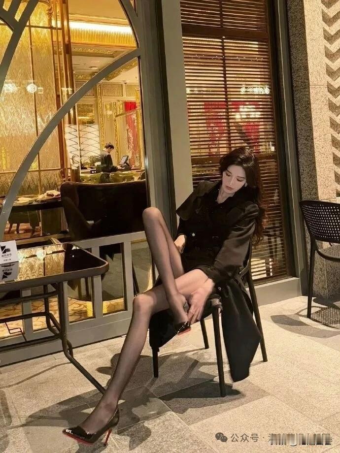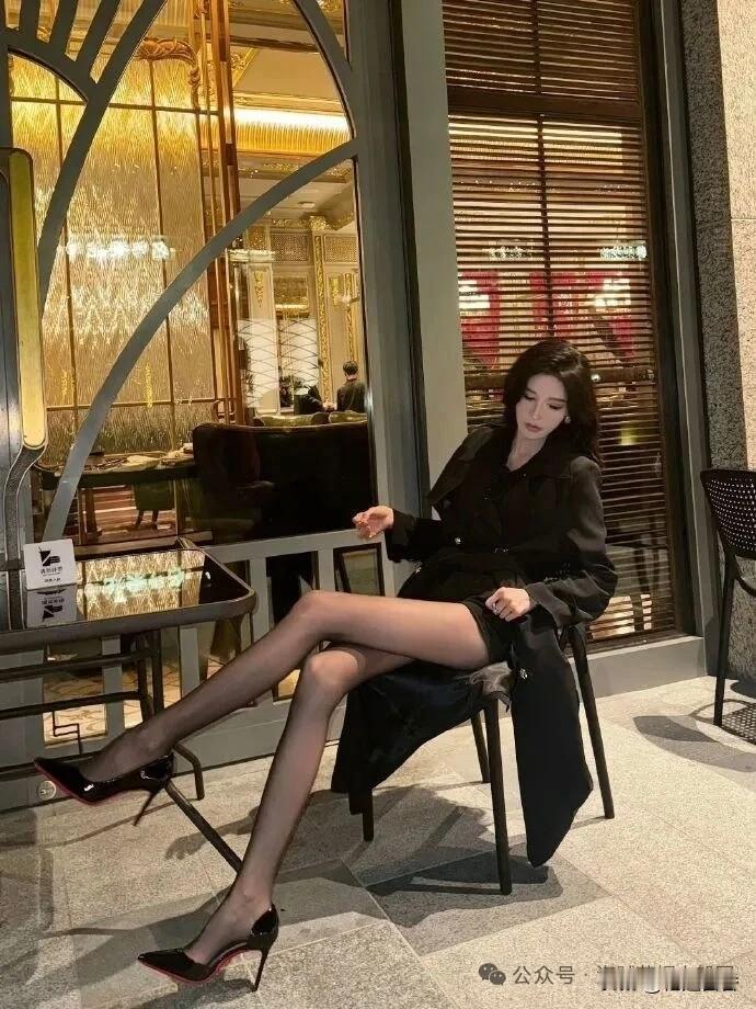 都市夜色中的优雅独坐,黑衣女郎的沉思时刻。夜景气质少女