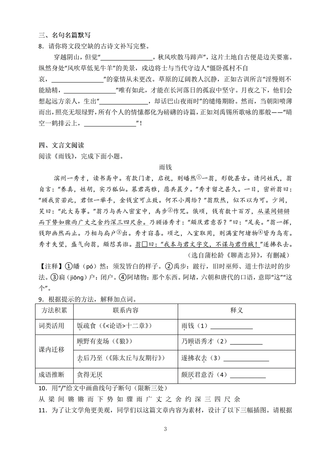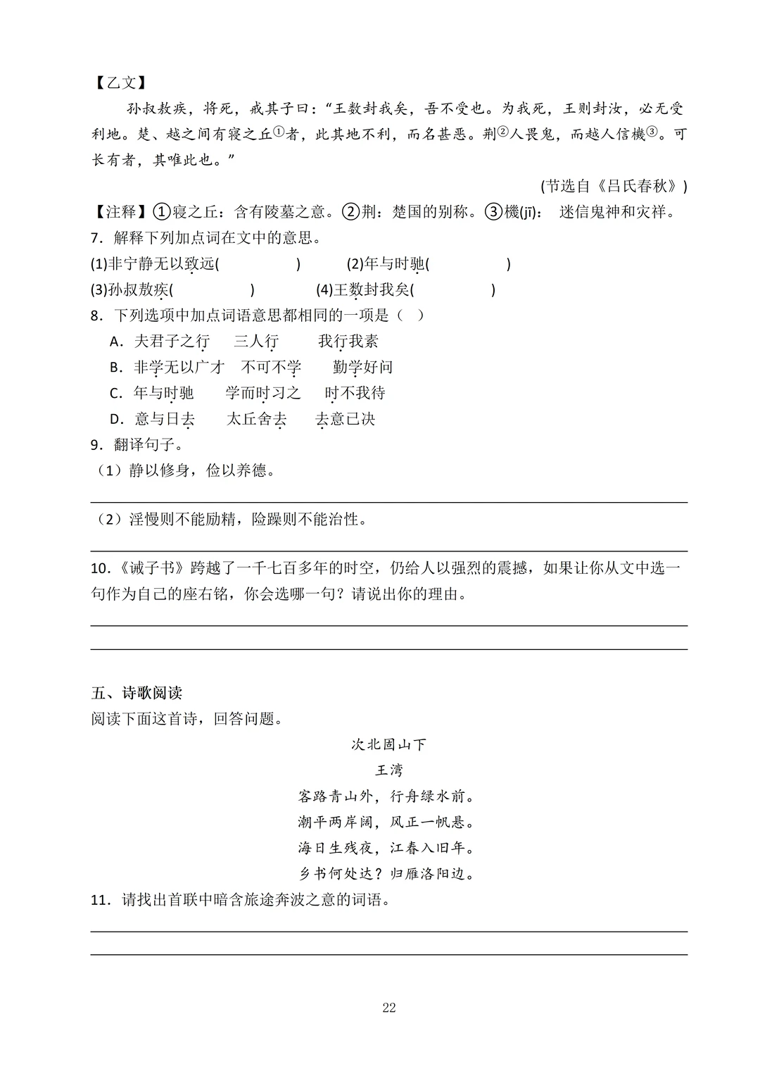 基础板块、古诗词默写和赏析、文言文阅读、阅读理解和作文,每个板块都是基础难度。像近 3 年真题里高频出现的 “安详”“惩戒” 等易混字音字形、“何当共剪西窗烛,却话巴山夜雨时。”“僵卧孤村不自哀,尚思为国戍轮台”等必考默写句,都在里面,帮娃把基础分稳稳抓牢!