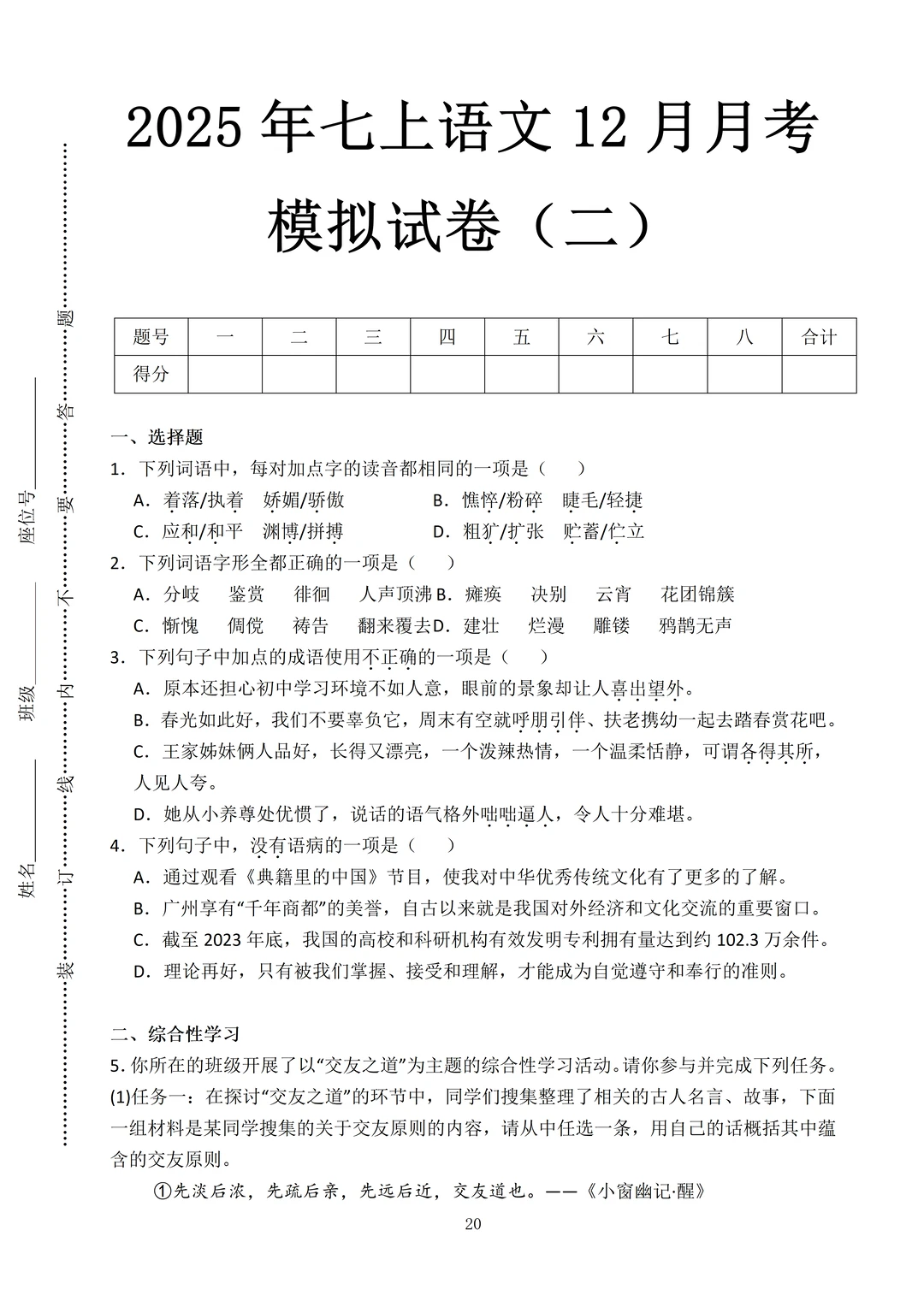 [火R]最近好多家长:“老师,有没有七年级上册语文12月月考的试卷啊?娃马上要考了,想让他练练手”🙋️
