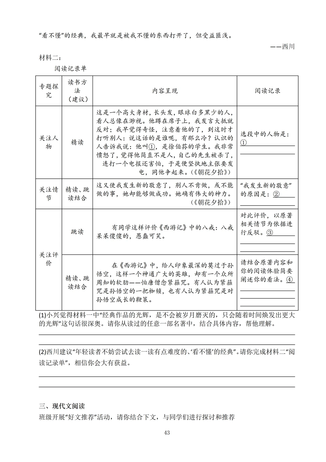 每个板块难度升级!,阅读板块材料更丰富,篇幅边长,理解难度加大。文言文考察可内外对比阅读,不仅要求学生理解课内文章,还要学会迁移课外。
