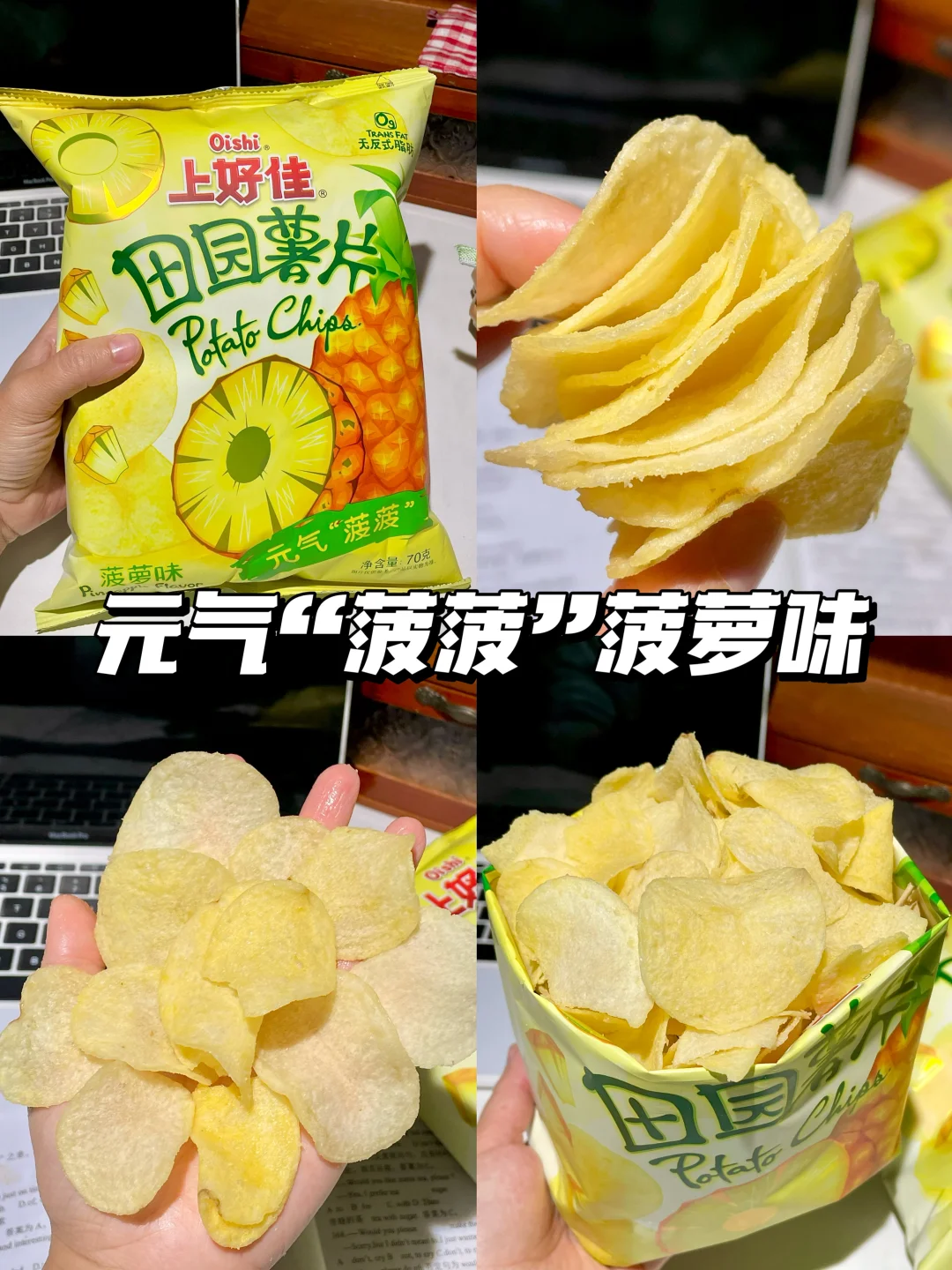 菠萝的酸甜果香混合着薯片的酥脆,一整个清爽又开胃!添加真实菠萝粉,果香纯粹不齁甜,咬下去“咔嚓”一声,犯困、解馋都靠它,元气感瞬间拉满!