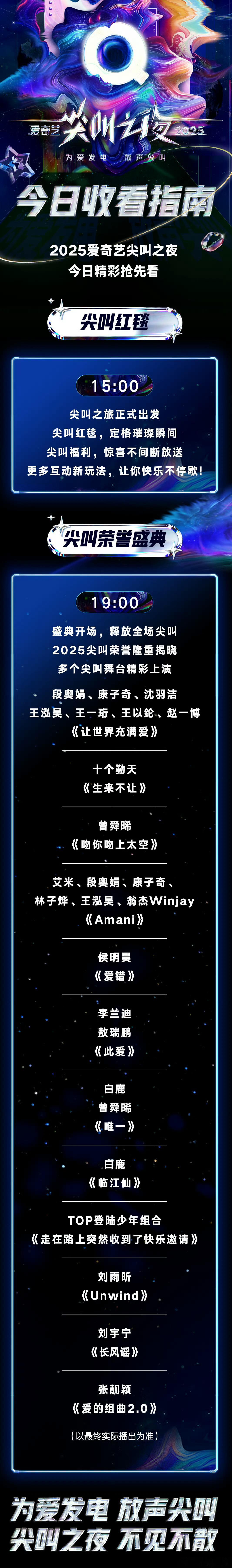 尖叫之夜节目单看到节目单了,今晚的2025爱奇艺尖叫之夜舞台堪称神仙打架,有白鹿