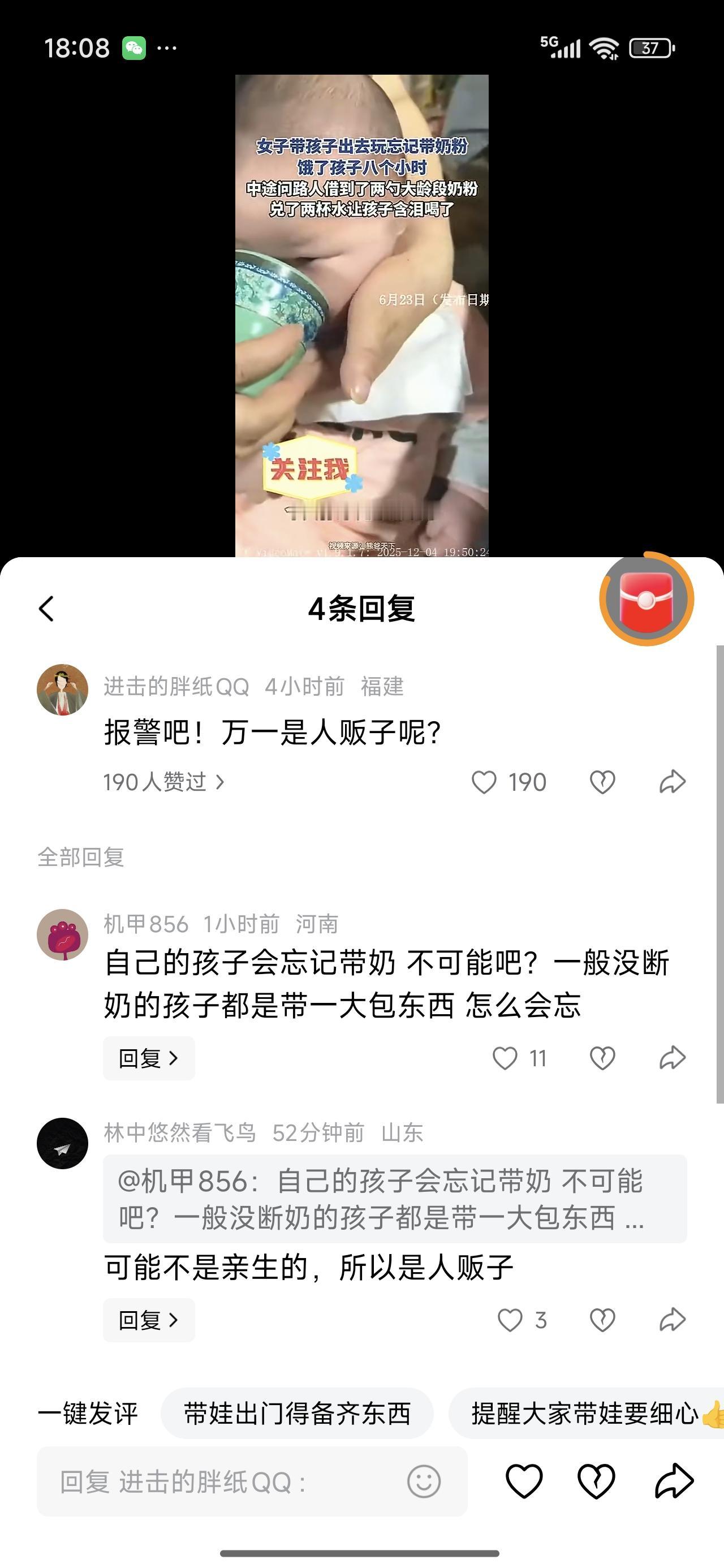 这个可以骂的大声点吗?笑死。 一个妈妈,出门不给孩子带奶粉,饿了孩子八小时。真的,你怕不是个人贩子吧! 中途问路人借了两勺大段龄奶粉,兑水给孩子喝了。孩子含泪喝的。 我去,这种要是真妈妈,将来老的时候,拔管别犹豫。医生问,考虑一下上呼吸机吗?直接拒绝,还上个屁。哎呦,是真气人啊! 活人还能让尿憋死?不能买个小袋的,临时对付一下吗?这心是真大啊!自己不产奶,还不想办法。黑啊,真黑。