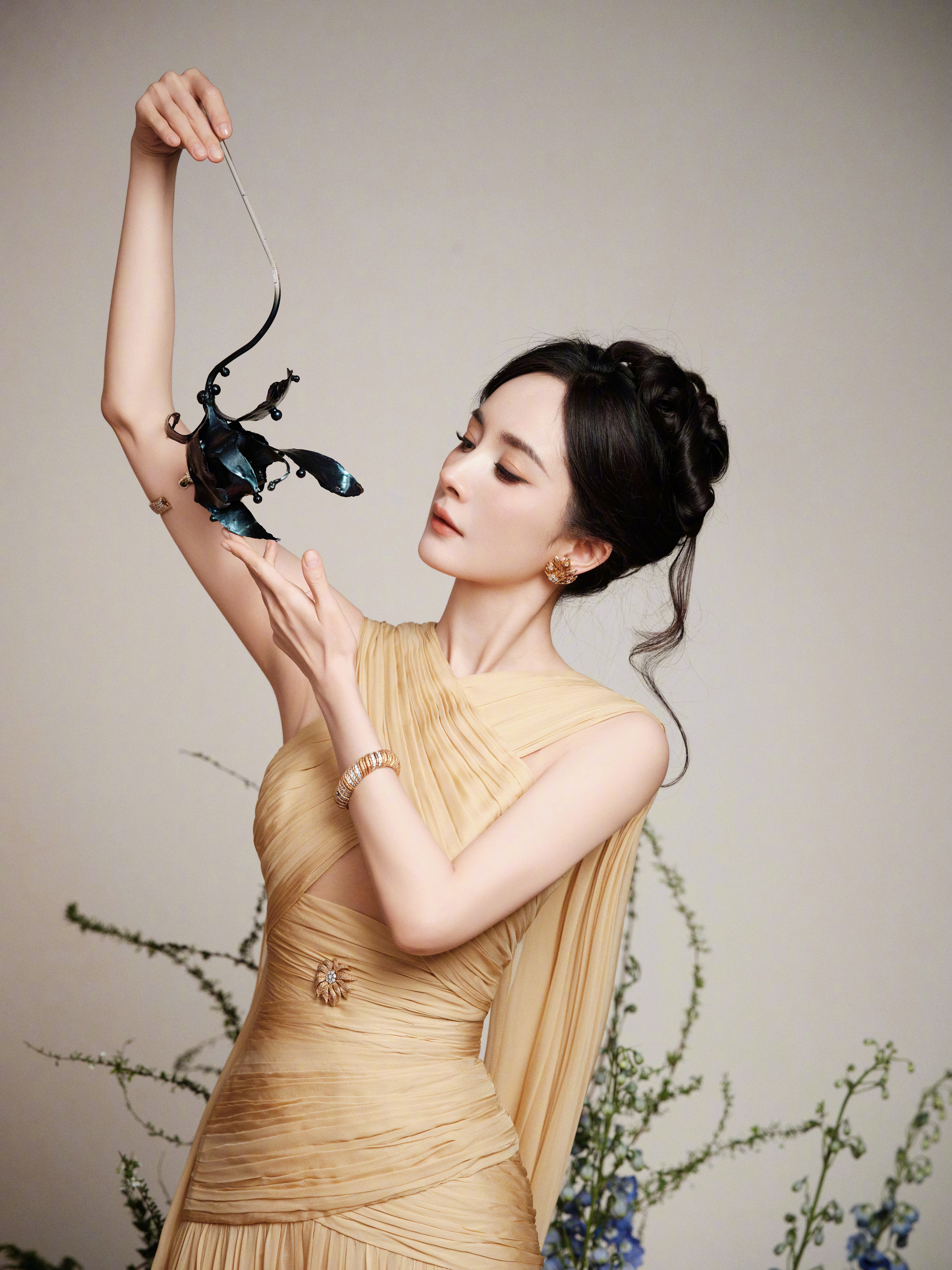 杨幂 柔纱裁作星河序,风骨凝成岁月章。一袭浅金曳地,于简约处见锋芒,于温柔里藏力