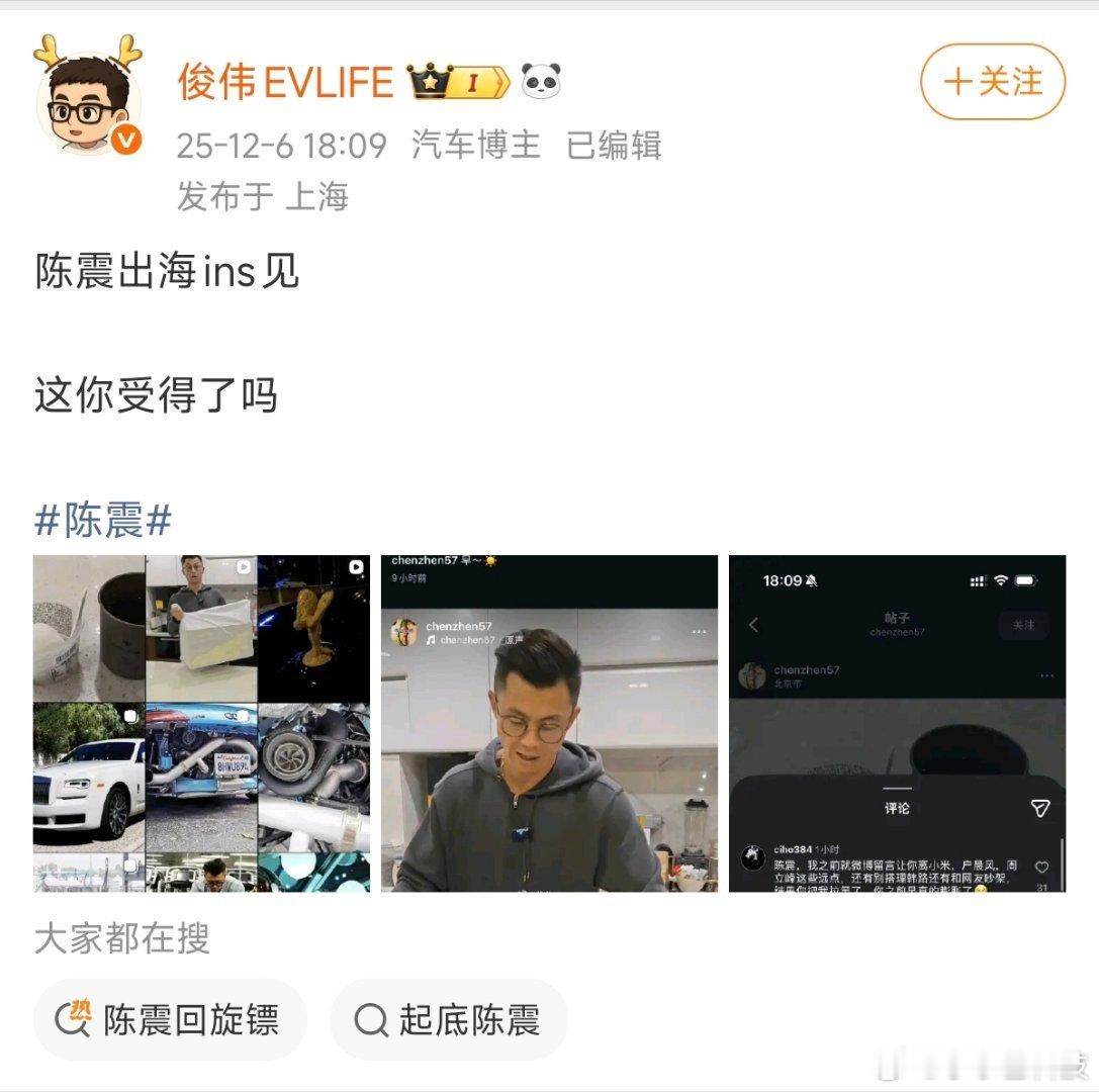 陈震在ins发文???这ins不是外网吗?他是怎么登录上去的?这真是陈震本人吗?还是Ai呀?