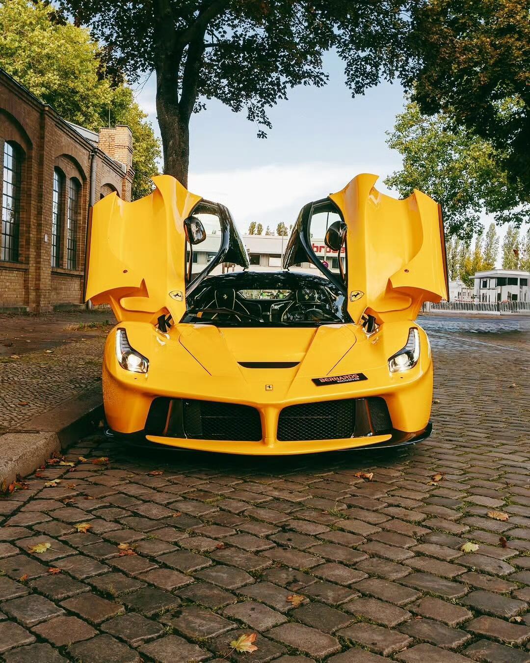 黄得晃眼的“公路闪电”——LaFerrari往街头一停,整条街的视线都被它勾走。蝴蝶门一掀,中置V12的轰鸣声瞬间点燃肾上腺素,这哪是超跑,是把顶级机械的野性焊在了车身上。碳纤维车身的冷硬质感,配着引擎的低吼,每一寸都写满“王者气场”。踩下油门的瞬间,风都追着它跑——这才是超跑该有的炸裂存在感!超跑美学