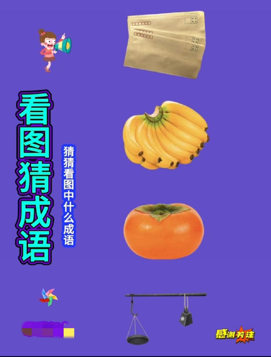 这题太绝了!信封、香蕉、柿子、秤,猜一个成语,我赌90%的人答不对!