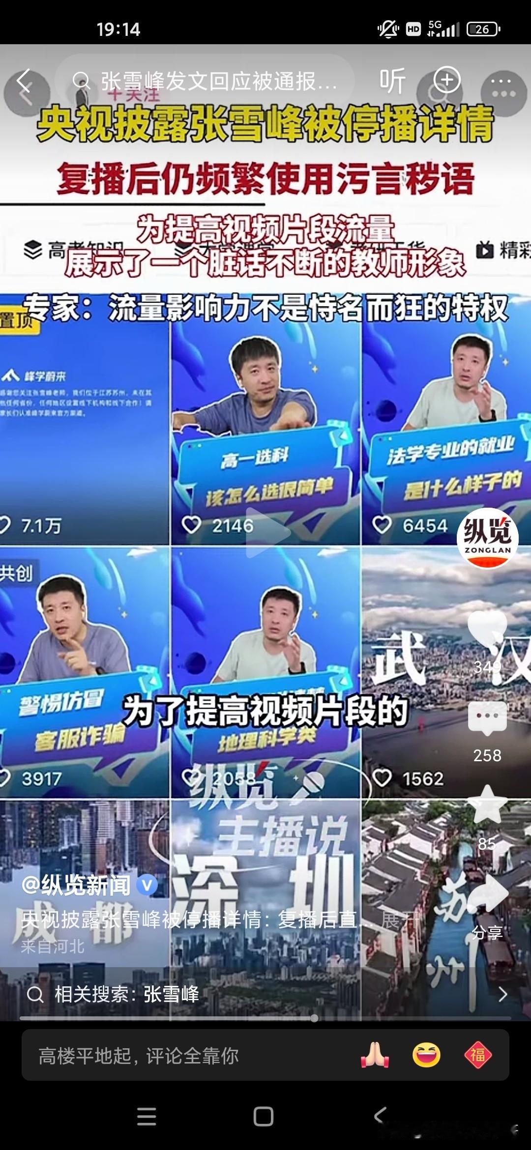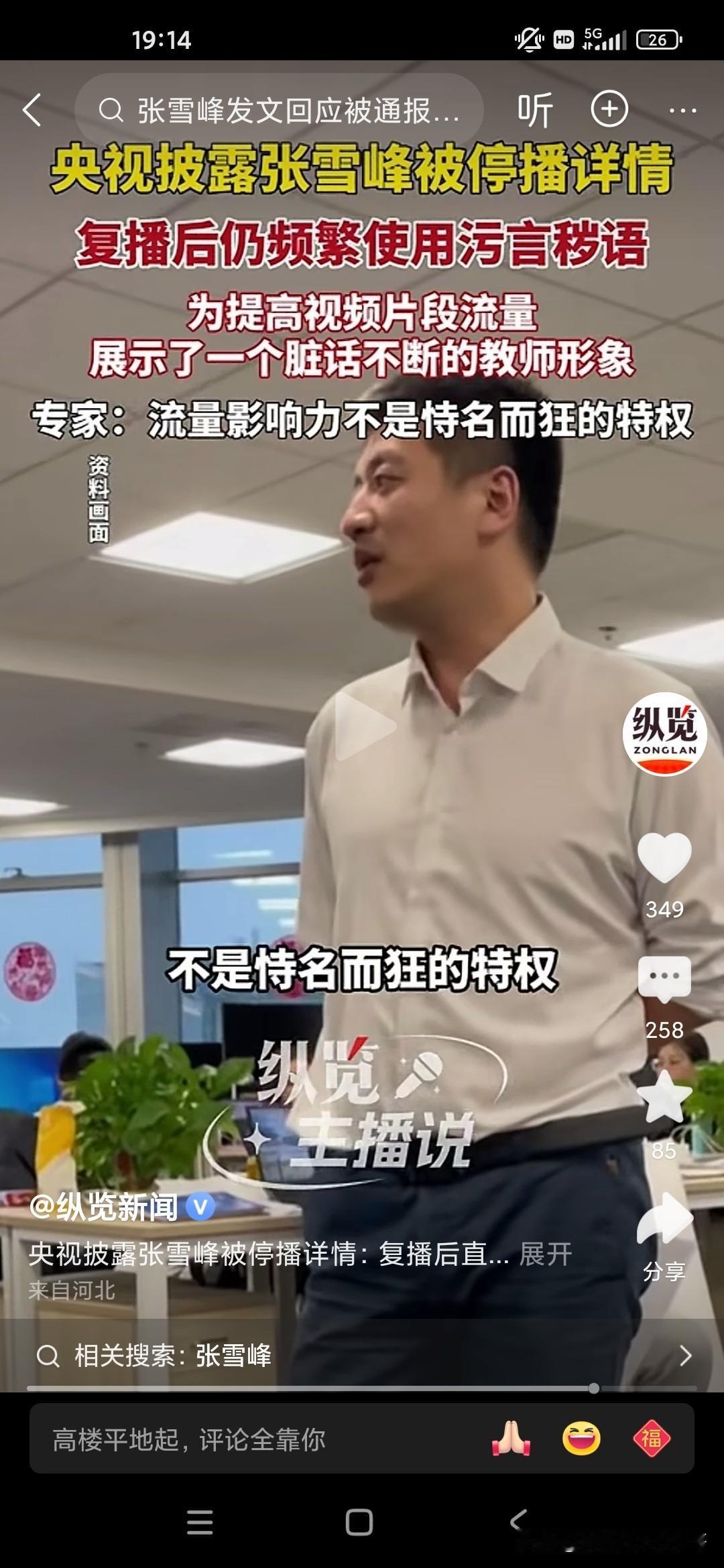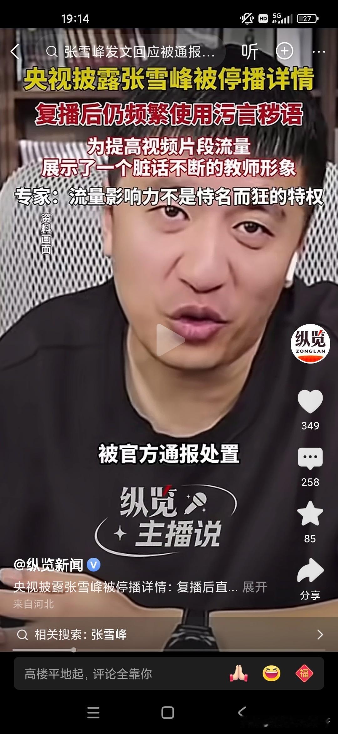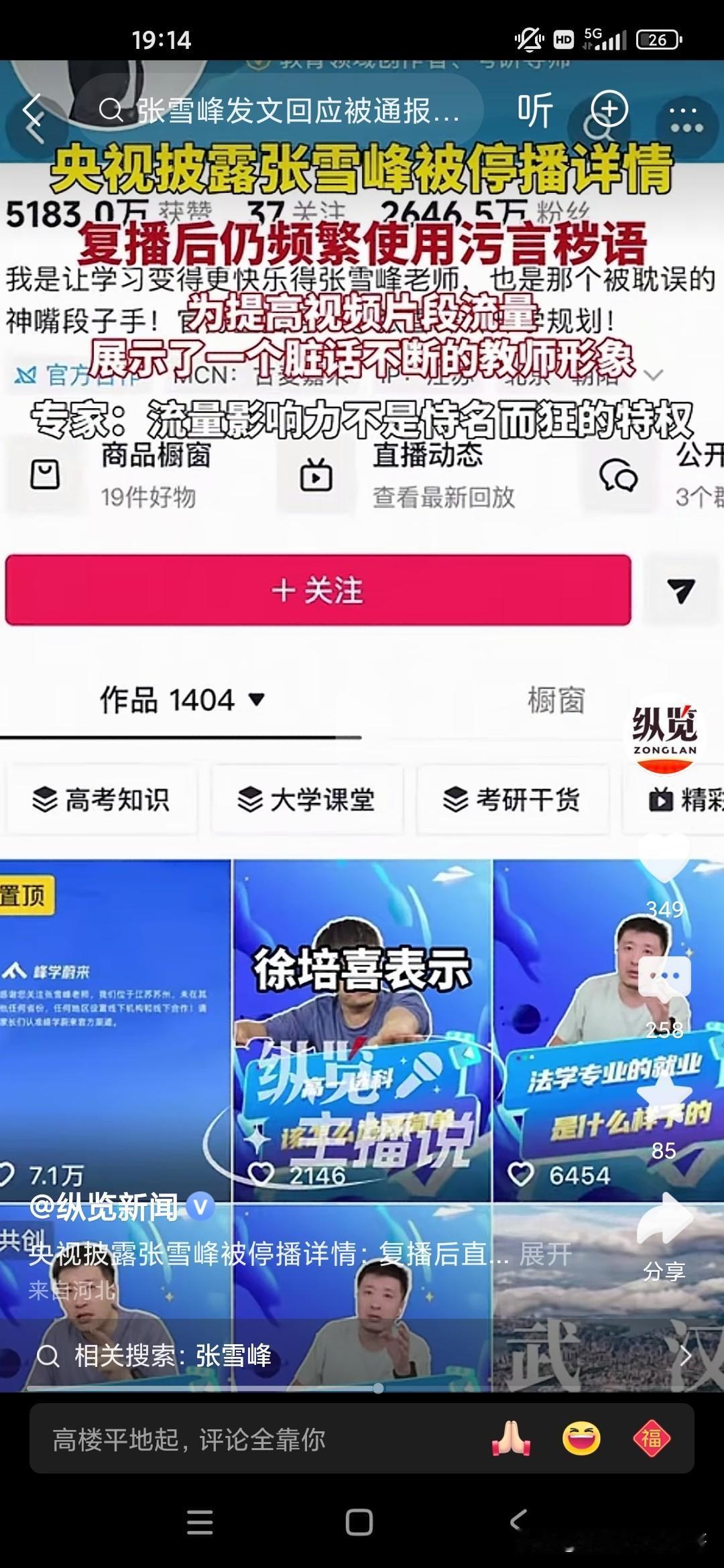天狂有雨,人狂有祸,张雪峰老师就是因为控制不了自己的情绪,在直播间里骂了一些故意挑衅他挑逗他的粉丝,实在是不应该,有些人就是眼红你的出名,眼红你的发财,因为张雪峰老师曾经说过他的,他赚的钱够他女儿花几辈子了,但是却因为自己拥有庞大的粉丝量,据说有6500万粉丝,流量非常庞大,甚至可以与一些自媒体进行叫板的地步,所以说国家现在对于网络方面是严格控制,但是张雪峰却踩了这样的风头,中国人民大学新闻传播学院的教授还批评他自恃自己有流量,就出言不逊,还有脏话,和教师的身份完全不相符!因为互联网是有可以录播的嘛,所以说他说了什么脏话,很多观众在这个视频上都可以轻而易举的看到,所以很多人举报他,我们也知道他也许说的是一些真心话,但是他有时候控制不了自己的情绪,然后被别有用心的人抓住了把柄,结果跌落神坛!