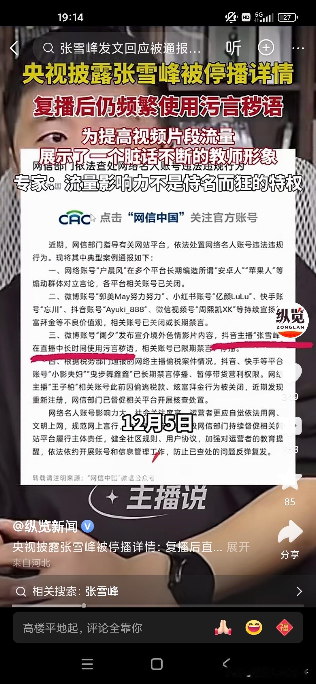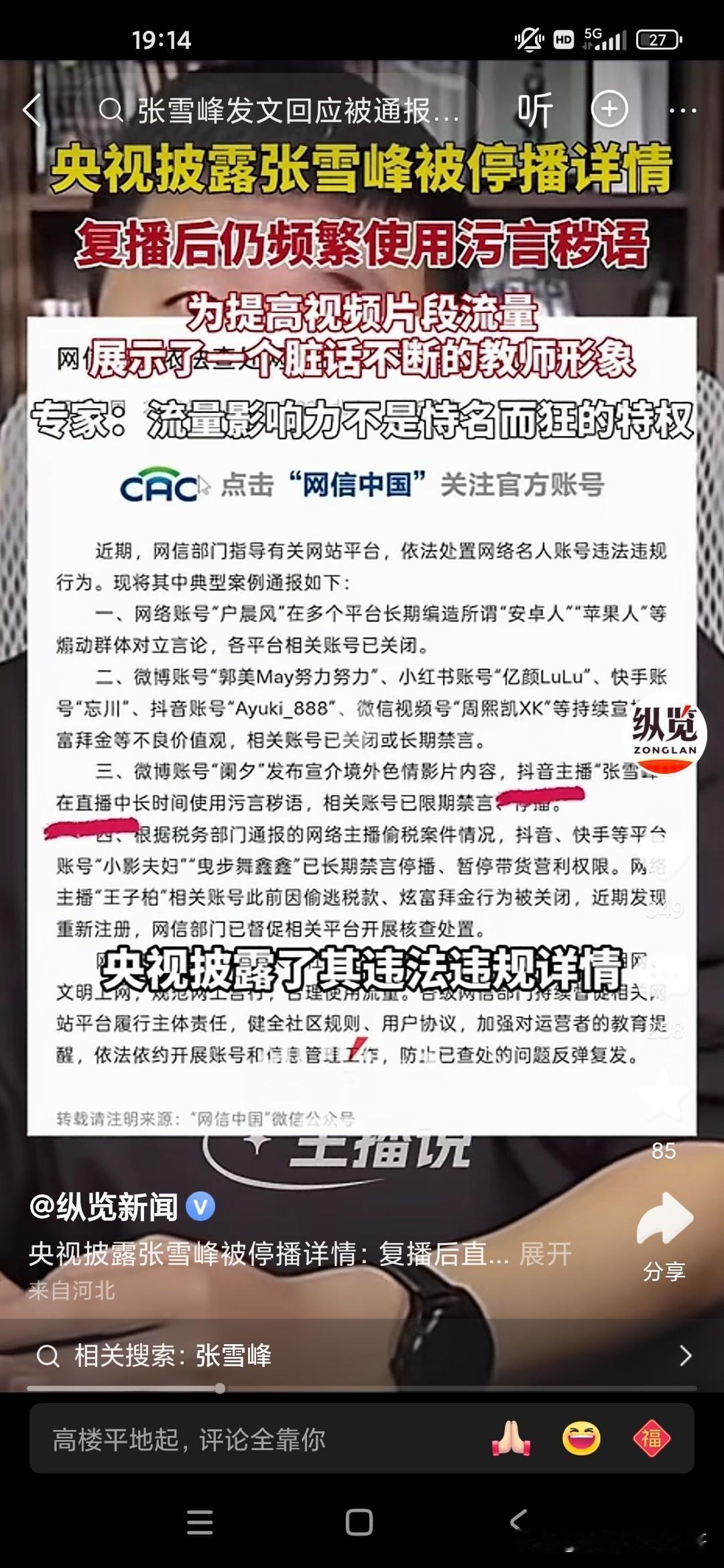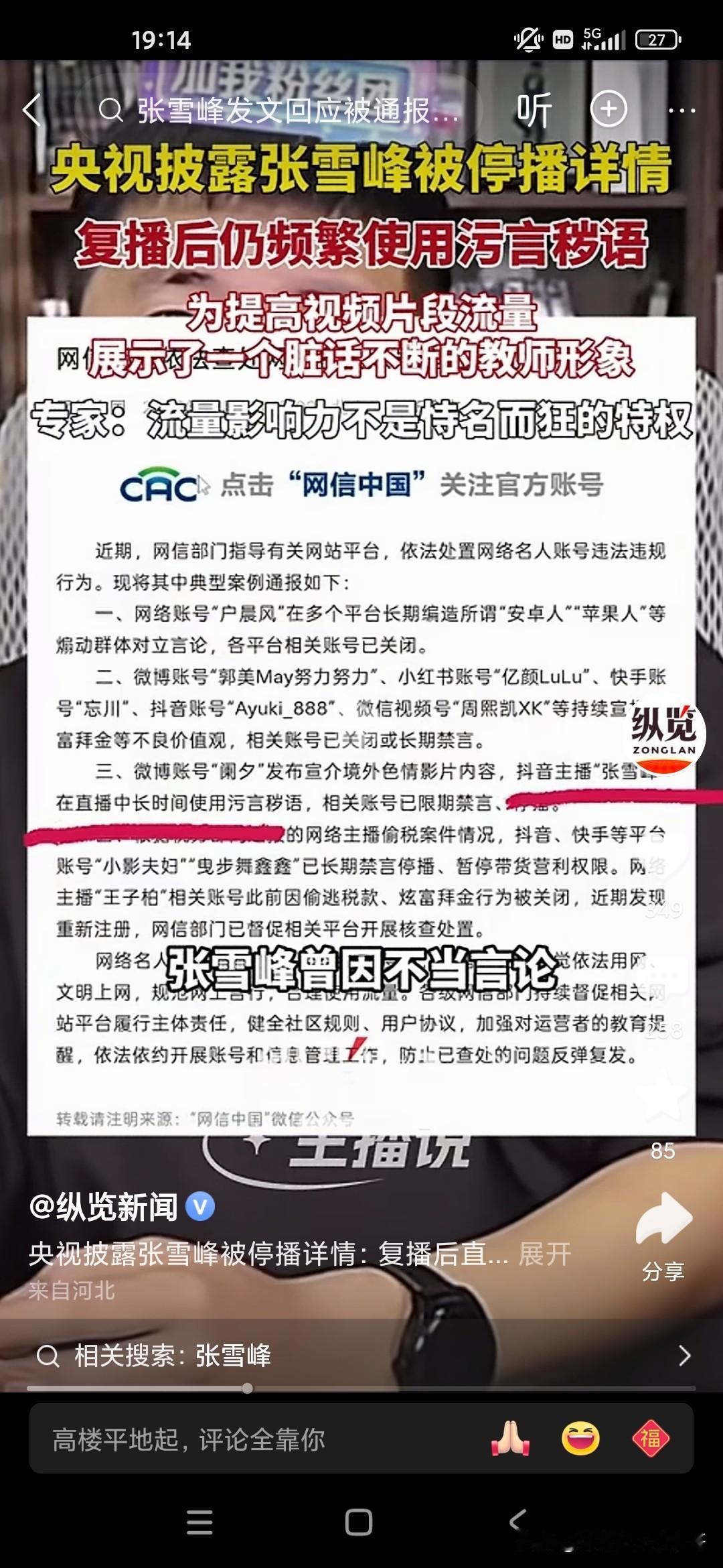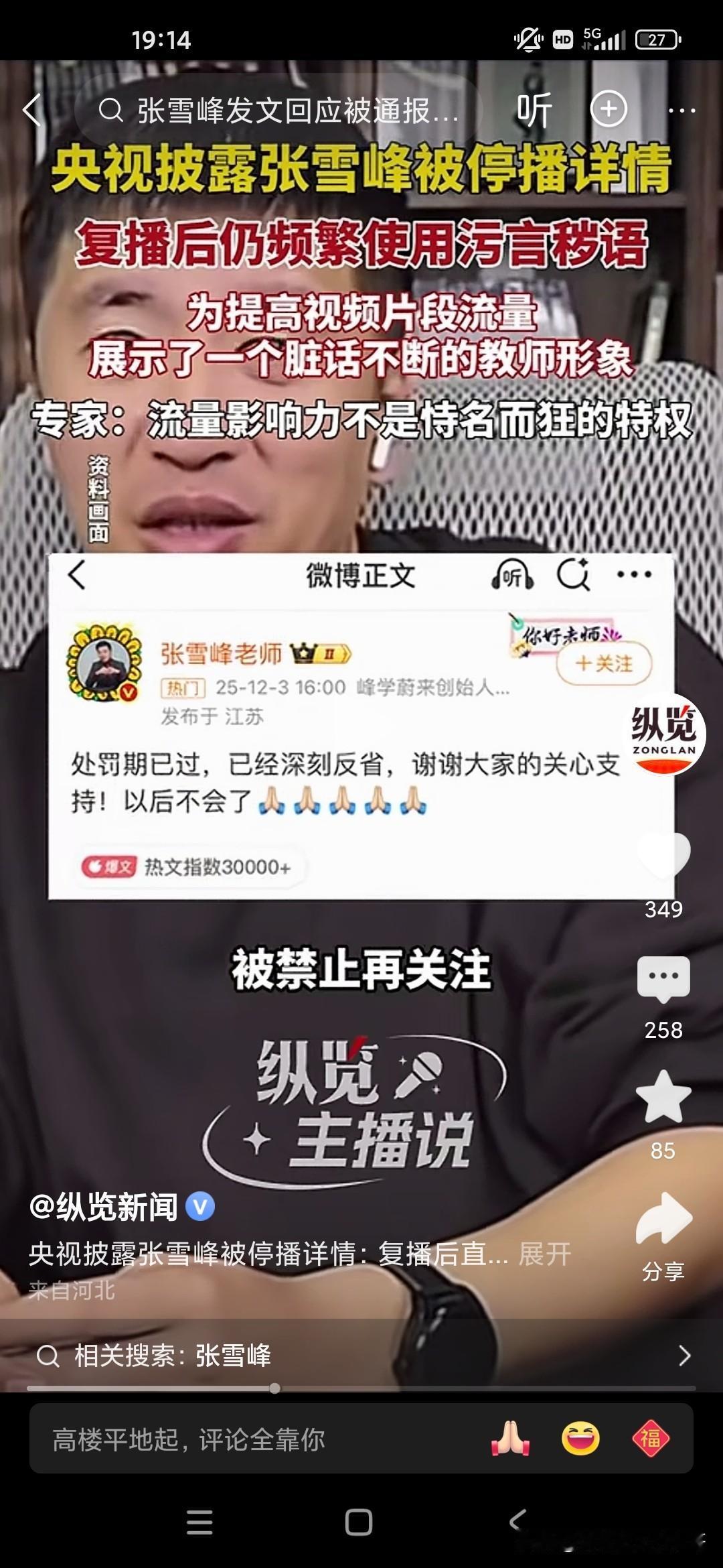 天狂有雨,人狂有祸,张雪峰老师就是因为控制不了自己的情绪,在直播间里骂了一些故意挑衅他挑逗他的粉丝,实在是不应该,有些人就是眼红你的出名,眼红你的发财,因为张雪峰老师曾经说过他的,他赚的钱够他女儿花几辈子了,但是却因为自己拥有庞大的粉丝量,据说有6500万粉丝,流量非常庞大,甚至可以与一些自媒体进行叫板的地步,所以说国家现在对于网络方面是严格控制,但是张雪峰却踩了这样的风头,中国人民大学新闻传播学院的教授还批评他自恃自己有流量,就出言不逊,还有脏话,和教师的身份完全不相符!因为互联网是有可以录播的嘛,所以说他说了什么脏话,很多观众在这个视频上都可以轻而易举的看到,所以很多人举报他,我们也知道他也许说的是一些真心话,但是他有时候控制不了自己的情绪,然后被别有用心的人抓住了把柄,结果跌落神坛!