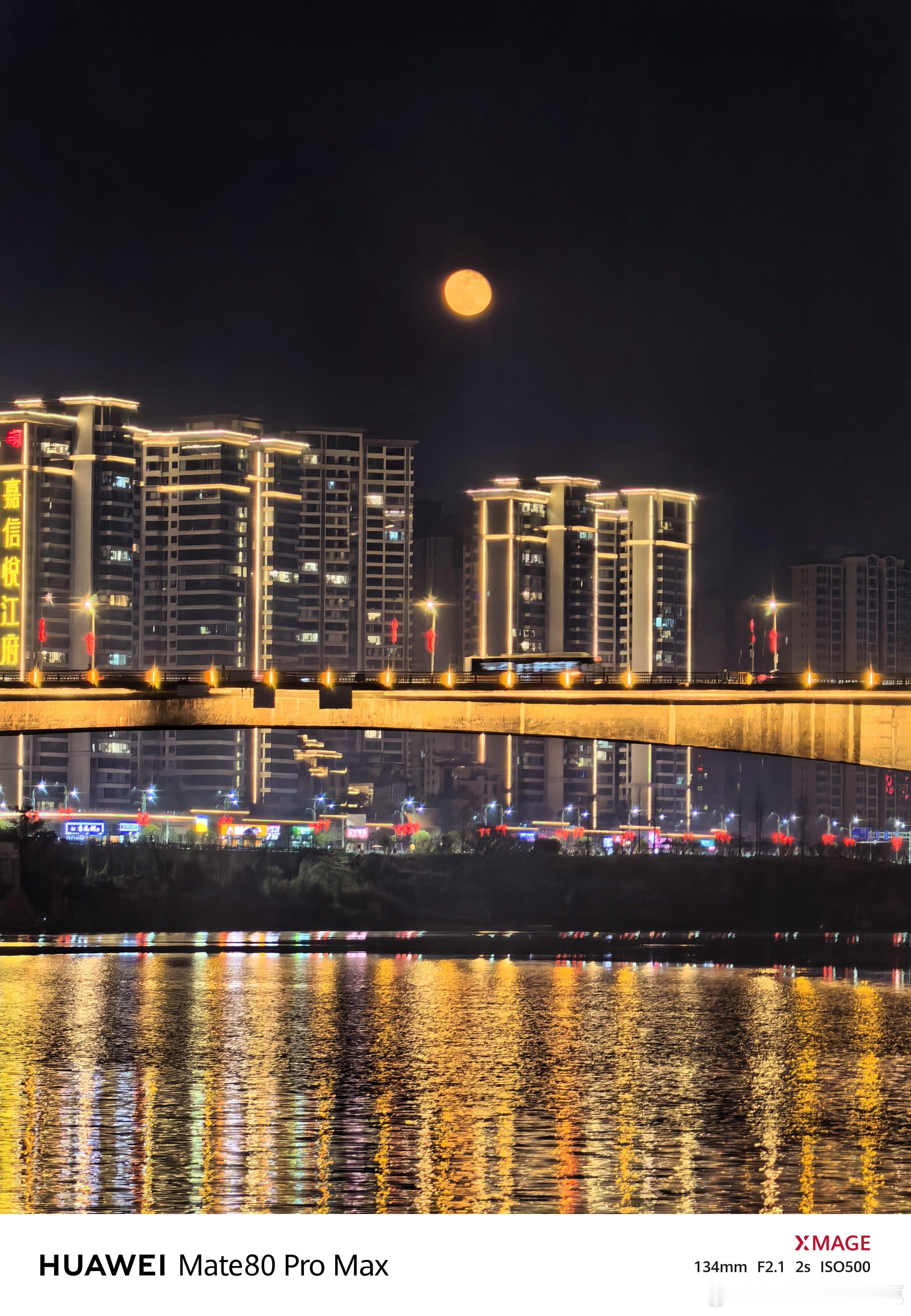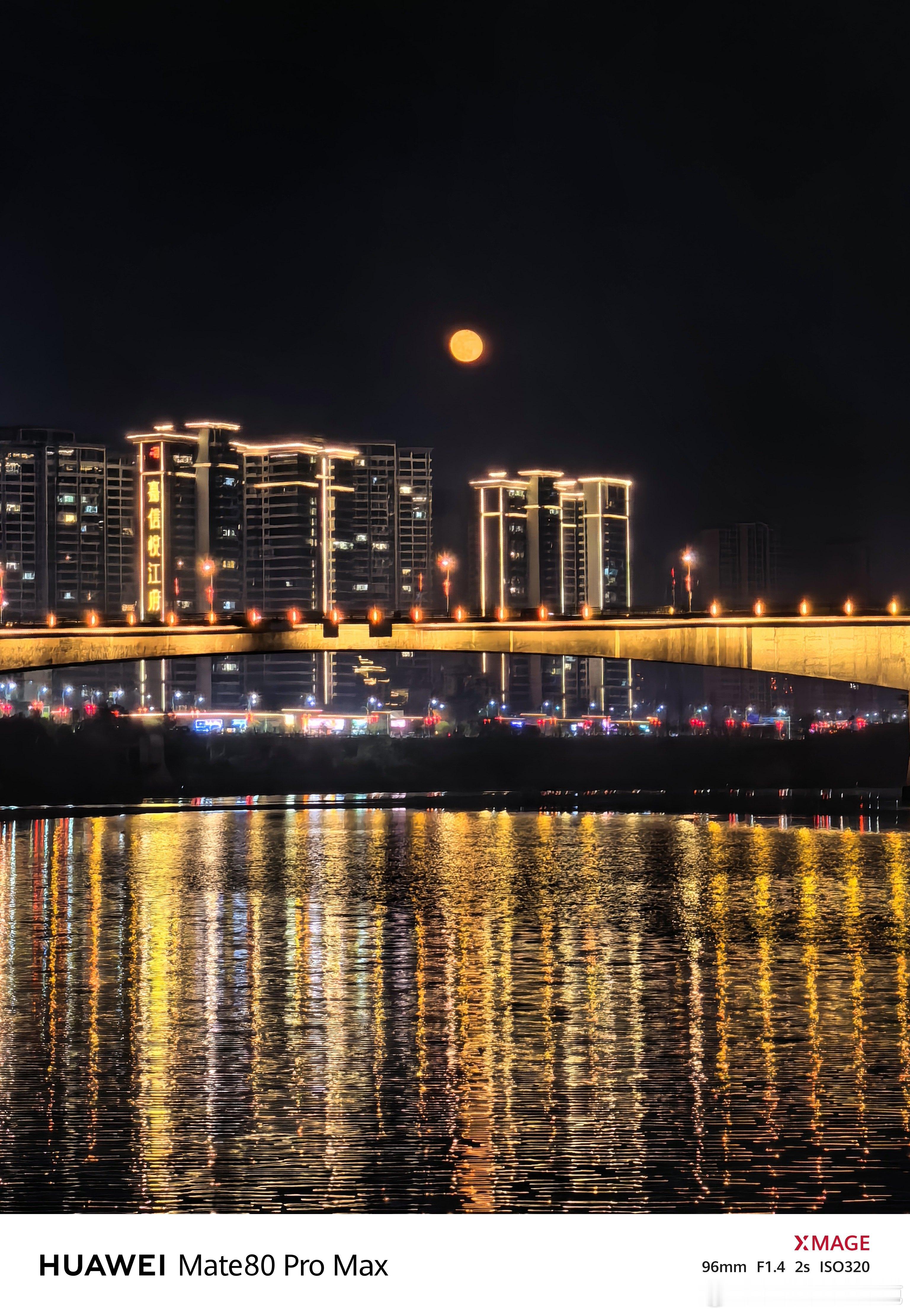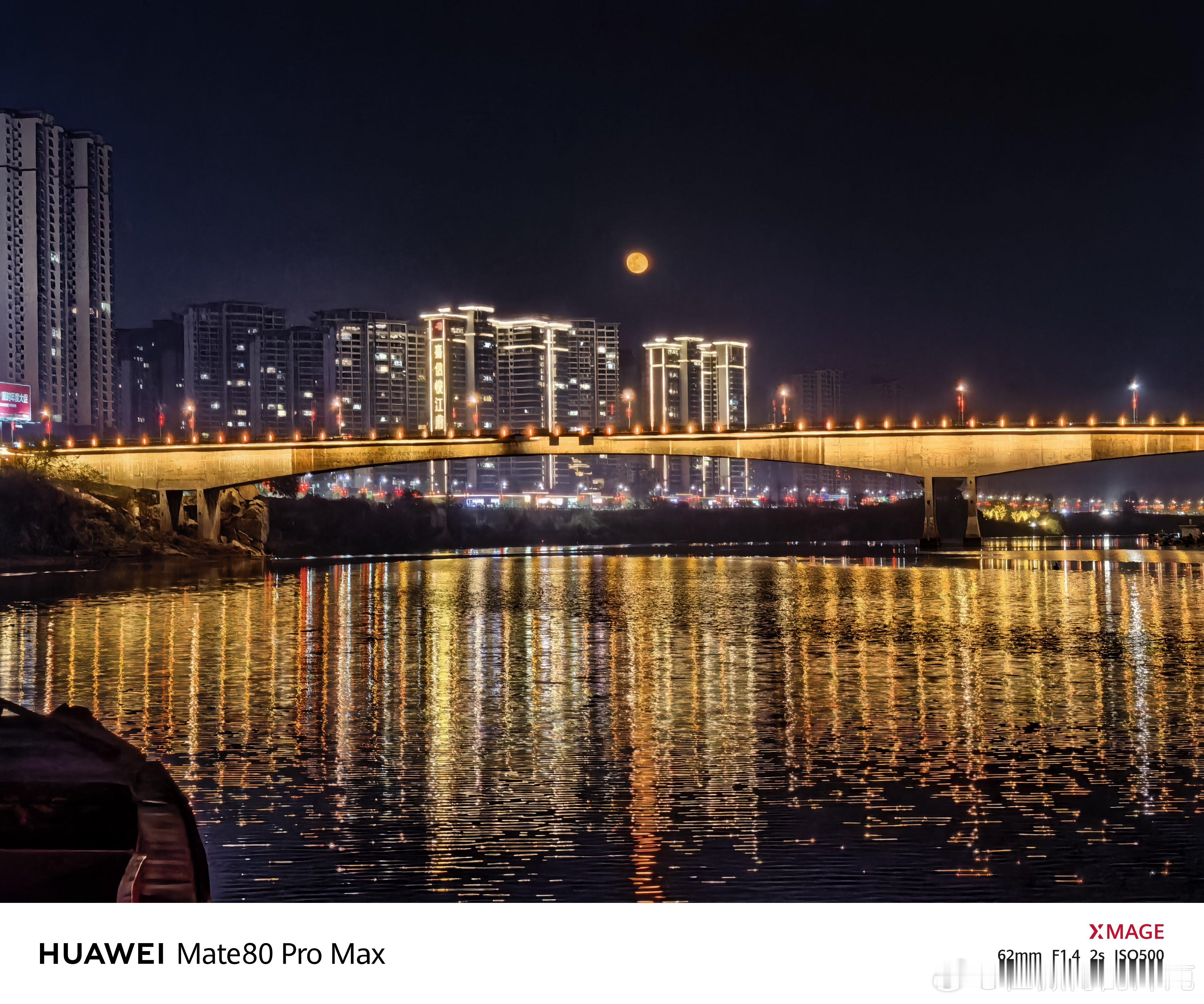 在河边拍照,今天是橙色月亮,又大又圆,献丑了。