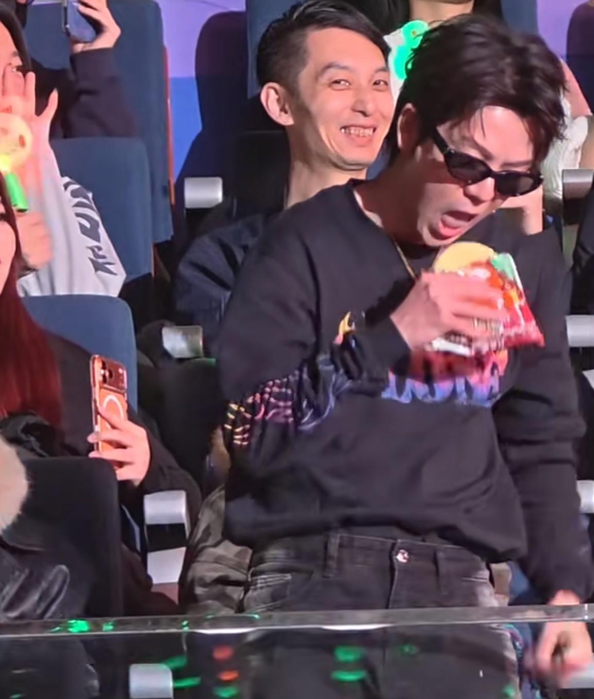 太感动,陆虎演唱会上与哥几个现场联动了! 原来姚政也来了,还带了老婆。 虎子说姚政是他的好朋友,也是一个领导,姚政立马得瑟起来。 然后虎子说从百子湾走到今天这个舞台他走了18年,他更感谢18年来陪伴他的兄弟们。 接着他依次介绍了亮哥、糊糊、苏醒和楚生。 哥几个一个比一个搞怪,亮哥耍酷、糊糊干吃面饼、苏醒染了绿色头发、楚生反手比心🫶! 今晚的虎子太幸福了。
