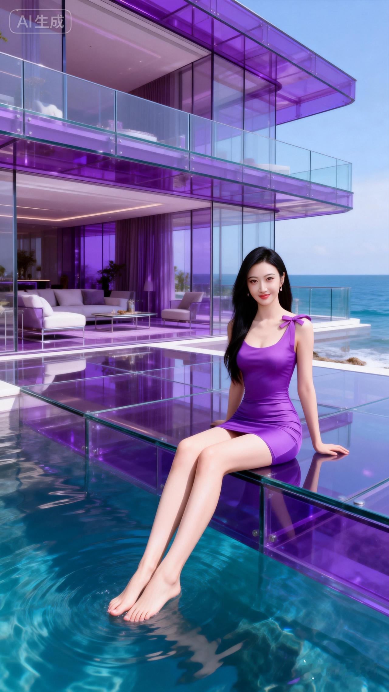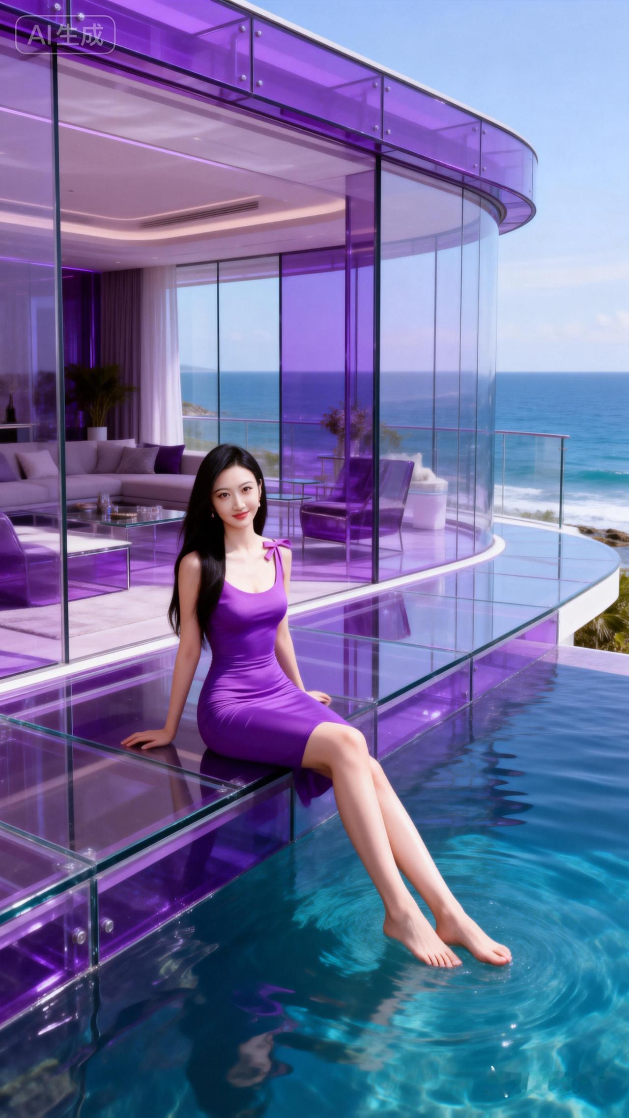 紫色度假屋,海天一色,享受宁静时光