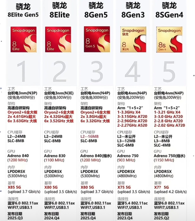 虽然现在天玑芯片功耗和性能都表现不错,而且比较有性价比。但骁龙芯片在安卓阵营还是更受青睐。可能是联发科以前,一核有难九核观看的事大家还记忆犹新。 以下是骁龙目前综合性能前五的芯片及排名,这芯命名有点凌乱,让人从名字很难分辨主次。双十二购机骁龙8至尊版还是更值得推荐,性能功耗都可以,相关机型价格现在都很实惠。