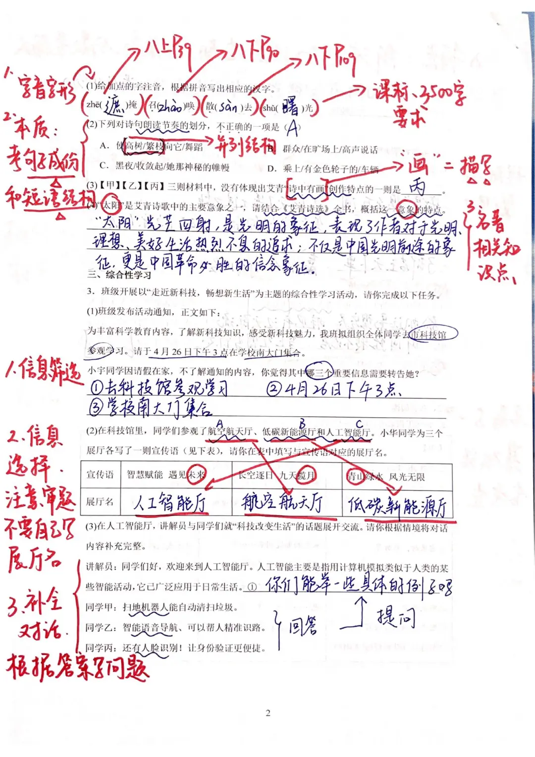 2.综合性学习一定要注意审题,看清题目是要我们选择还是自行创作,看清题目能节省很多时间。