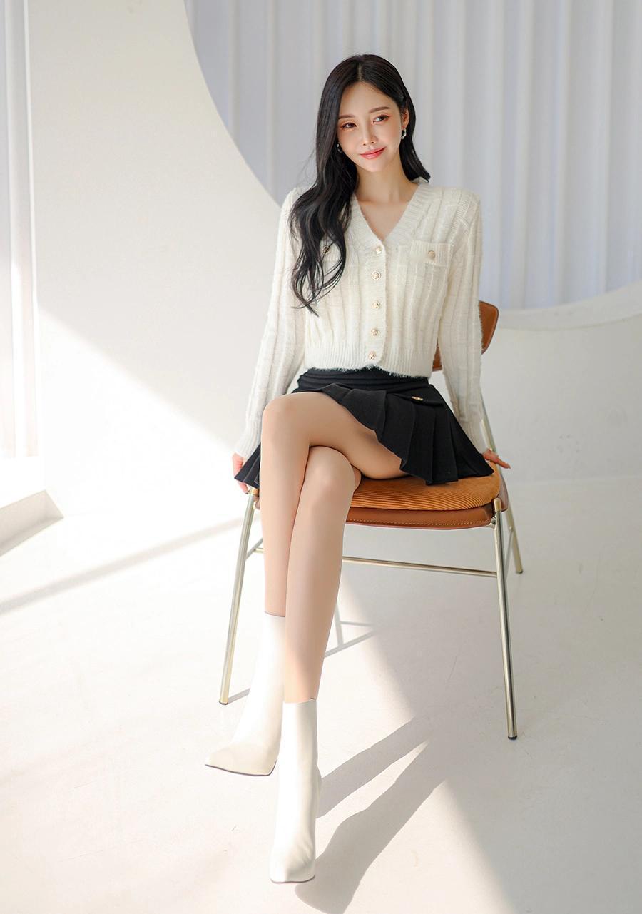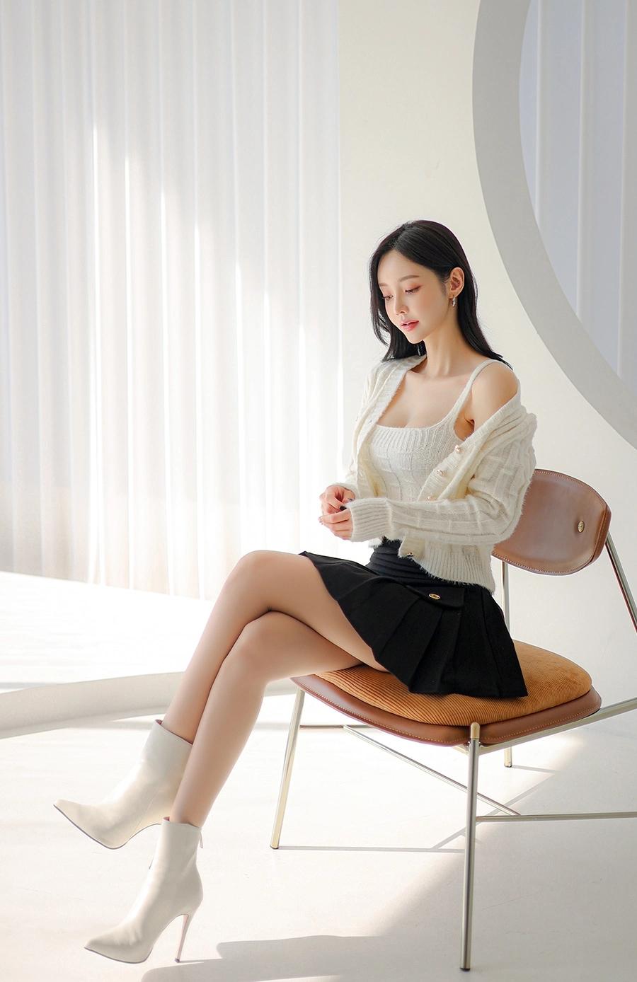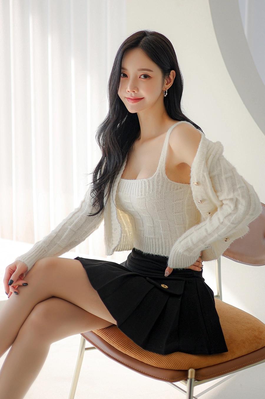 孙允珠着实不愧是阳光下温柔迷人的少女。她那身穿搭,白色高领无袖上衣与肩线完美贴合