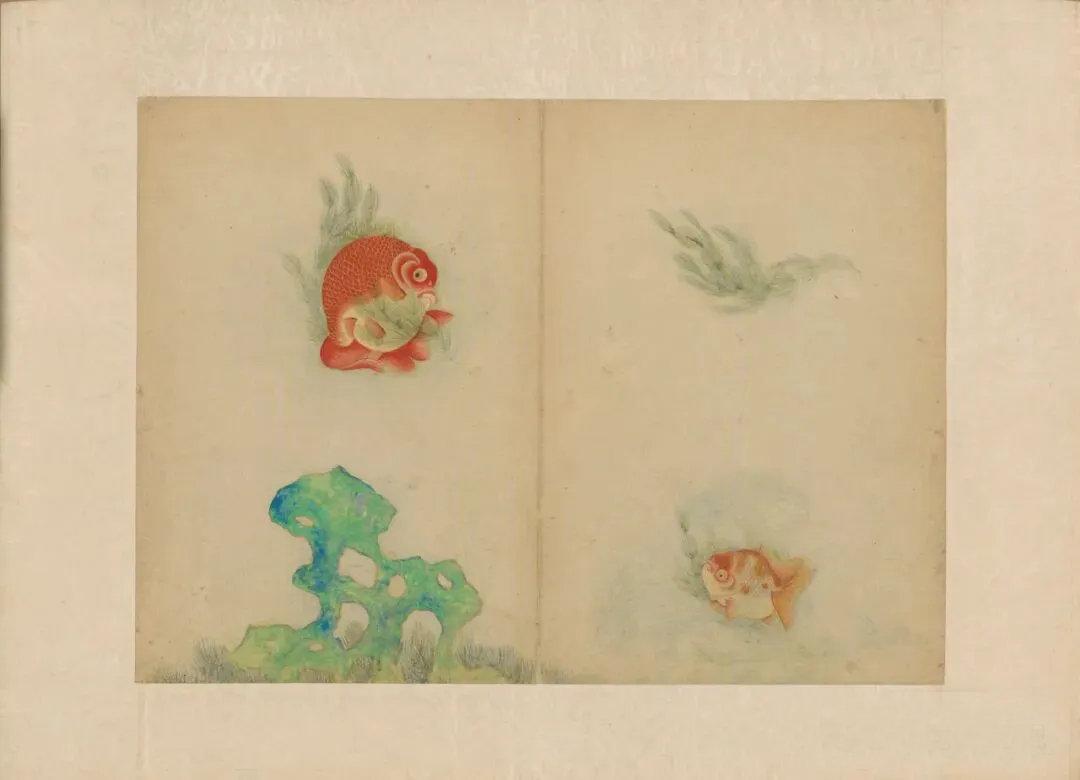 李文运用没骨技法,巧以色彩晕染。画中金鱼身形圆润,或独自畅游,或结伴而行,通过色彩的变化表现出金鱼的灵动。数只蝴蝶身披各异花纹,姿态轻盈,翅间似有微风掠过,仿佛呼之欲出。 画面中池水部分采用留白手法,恰到好处,仿佛能看见鱼儿游过时水面荡起的涟漪,给人以想象空间,营造出一种清新自然的意境。 在中国传统文化中,“鱼”谐音“余”,有富足有余之意;“蝶”谐音“耋”,代表健康长寿。此图册寄托了画师对美好生活的祝愿。