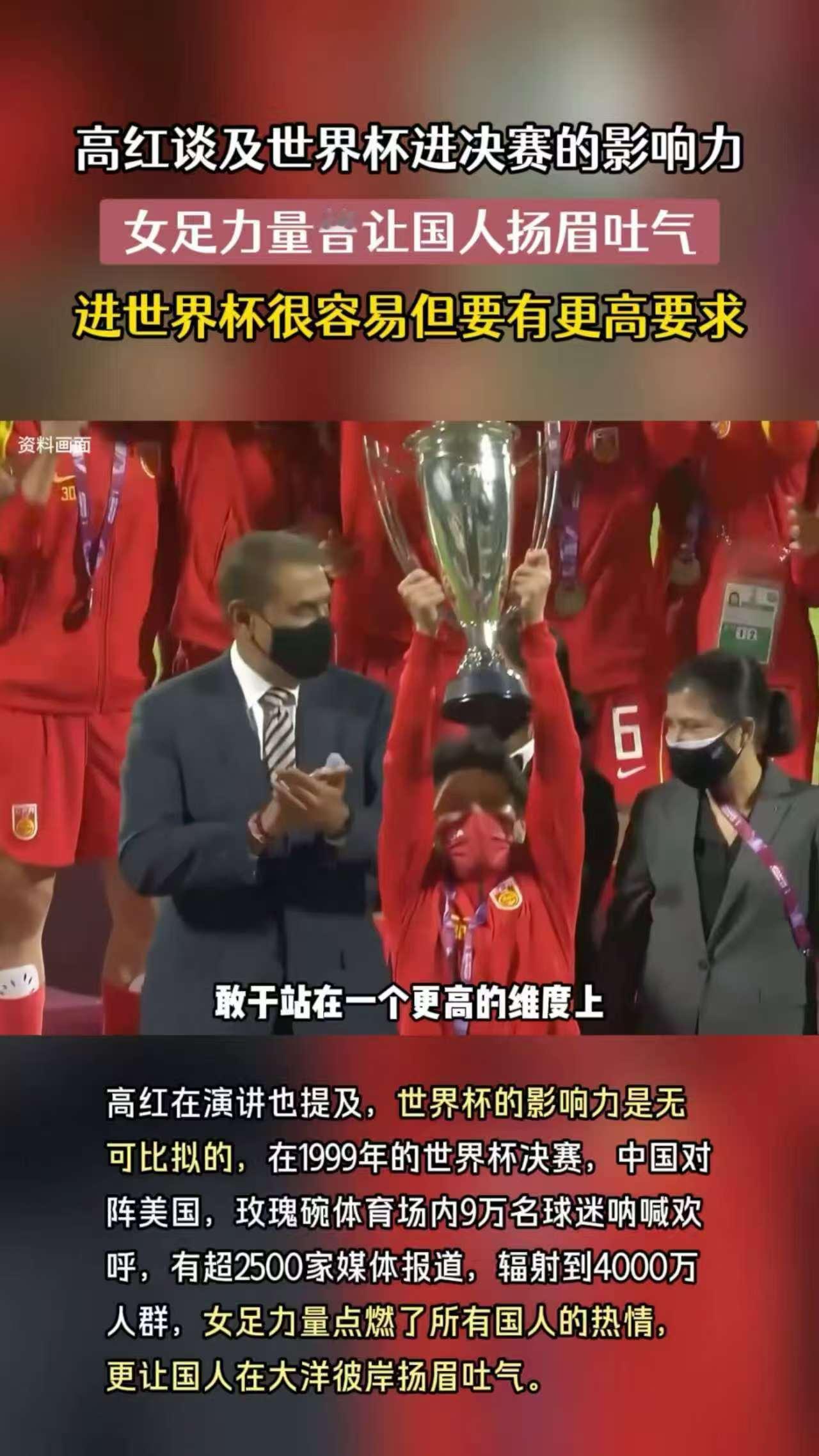 高红说女足力量曾让国人扬眉吐气高红说女足曾让国人扬眉吐气,作为前主力门将,她坚信中国女足有实力,世界杯小组出线并不难前女足队长称中国女足进世界杯很容易