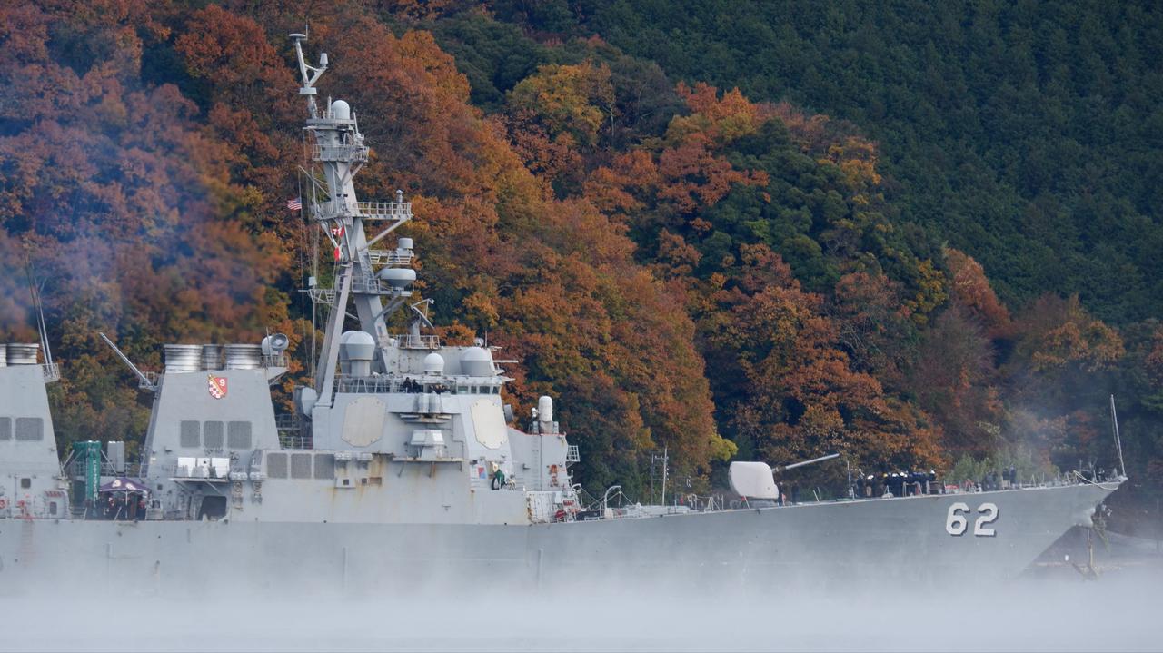 美国海军菲茨杰拉德号导弹驱逐舰在雾中驶入日本舞鹤港菲茨杰拉德号属于阿利·伯克级F