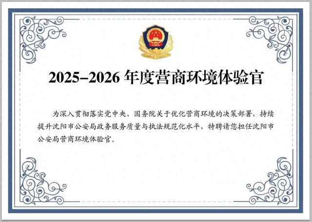 沈阳市公安局采取直接邀请、内部推荐、社会招募三种方式招募营商环境体验官,进一步优化法治化营商环境,持续提升公安政务服务质量与执法监管效能,精准感知企业和群众在公安政务服务、执法监管等领域的需求与痛点,助力沈阳经济社会高质量发展。