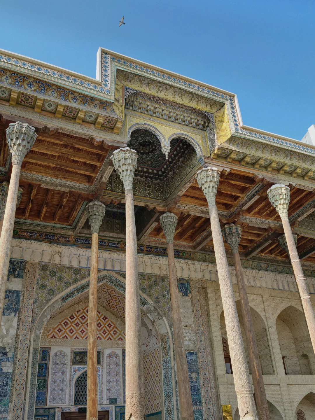 夏宫是布哈拉难得的欧式浪漫。水面倒影+玻璃折光很适合拍人像,午后 3 点光线最柔。