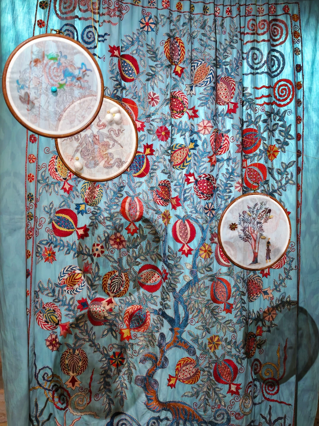 盐堆成的“海”,糖做成的透明亭子,放大版苏扎尼刺绣软雕塑,塑料袋拼成的画作