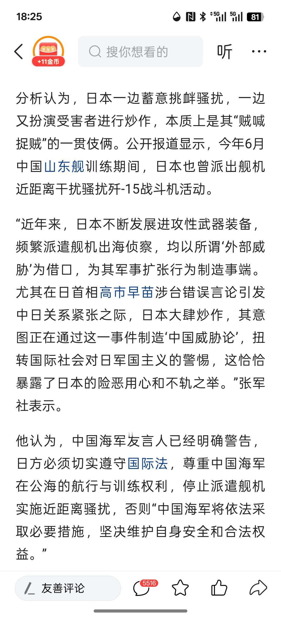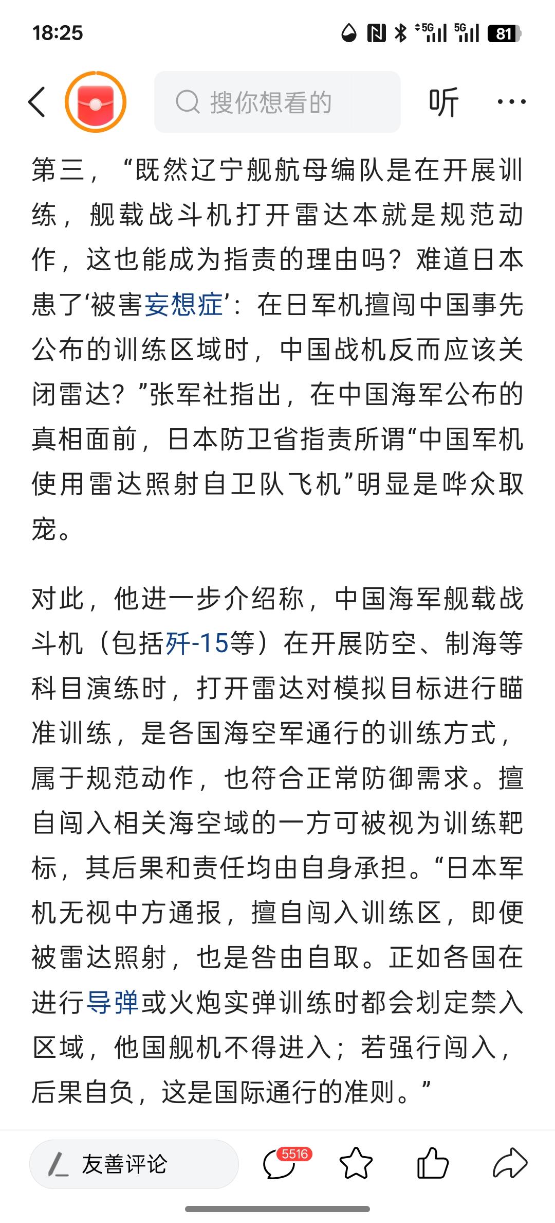 可是动真格的,日方军机多次抵近滋扰中国海军训练 专家警告:擅闯或可被视为训练靶标,后果自负。这已经很明确告诉日本,如果继续挑起事端,来中国海域找存在感,势必会收到中国的有力出击!一旦擅自闯入中国海域或者干扰中国的海军训练乃至活靶子的目标,可就真的被练成了,正好趁这个机会练练手!一旦发生类似的事情,就日本自己去承担责任