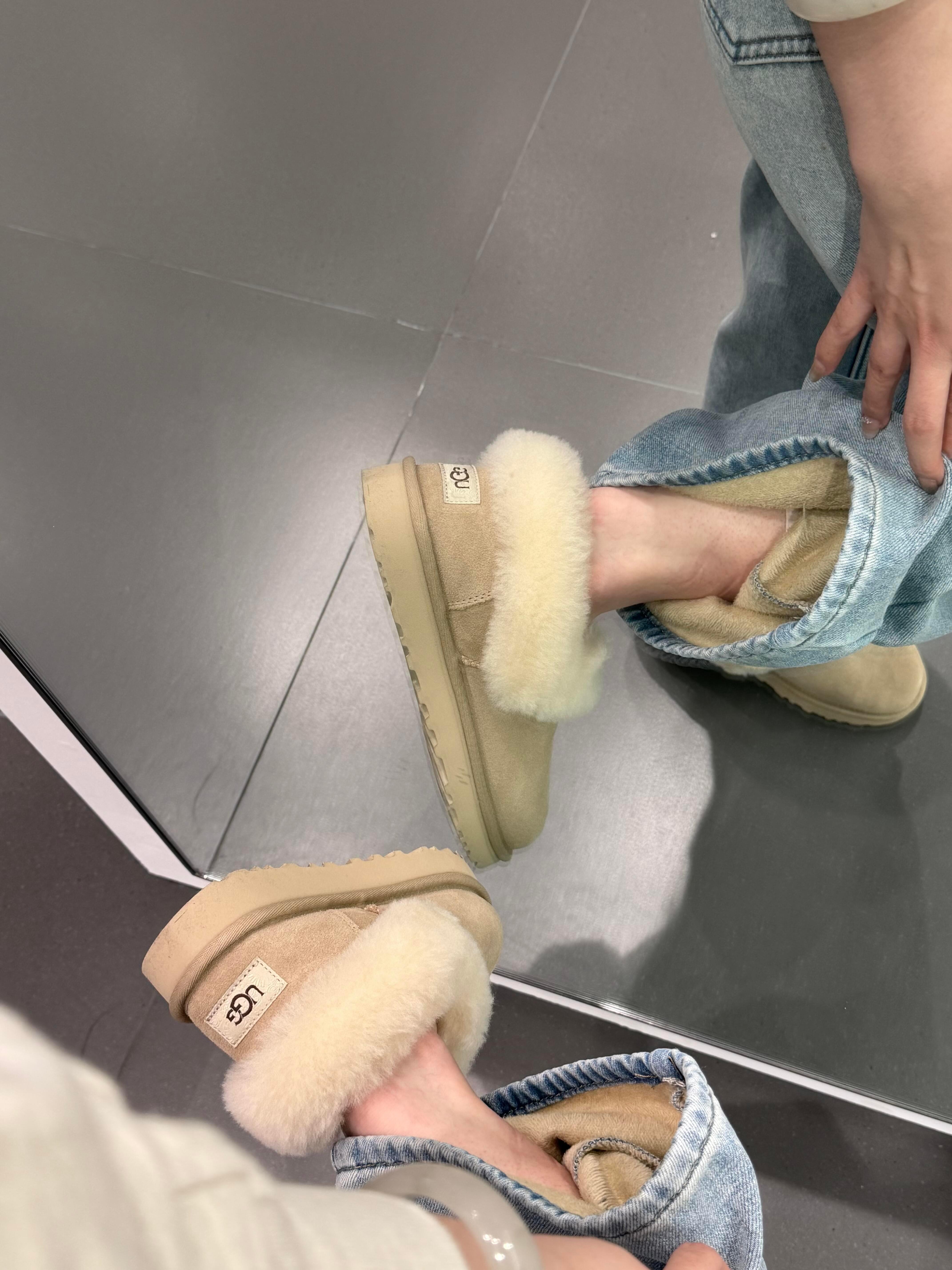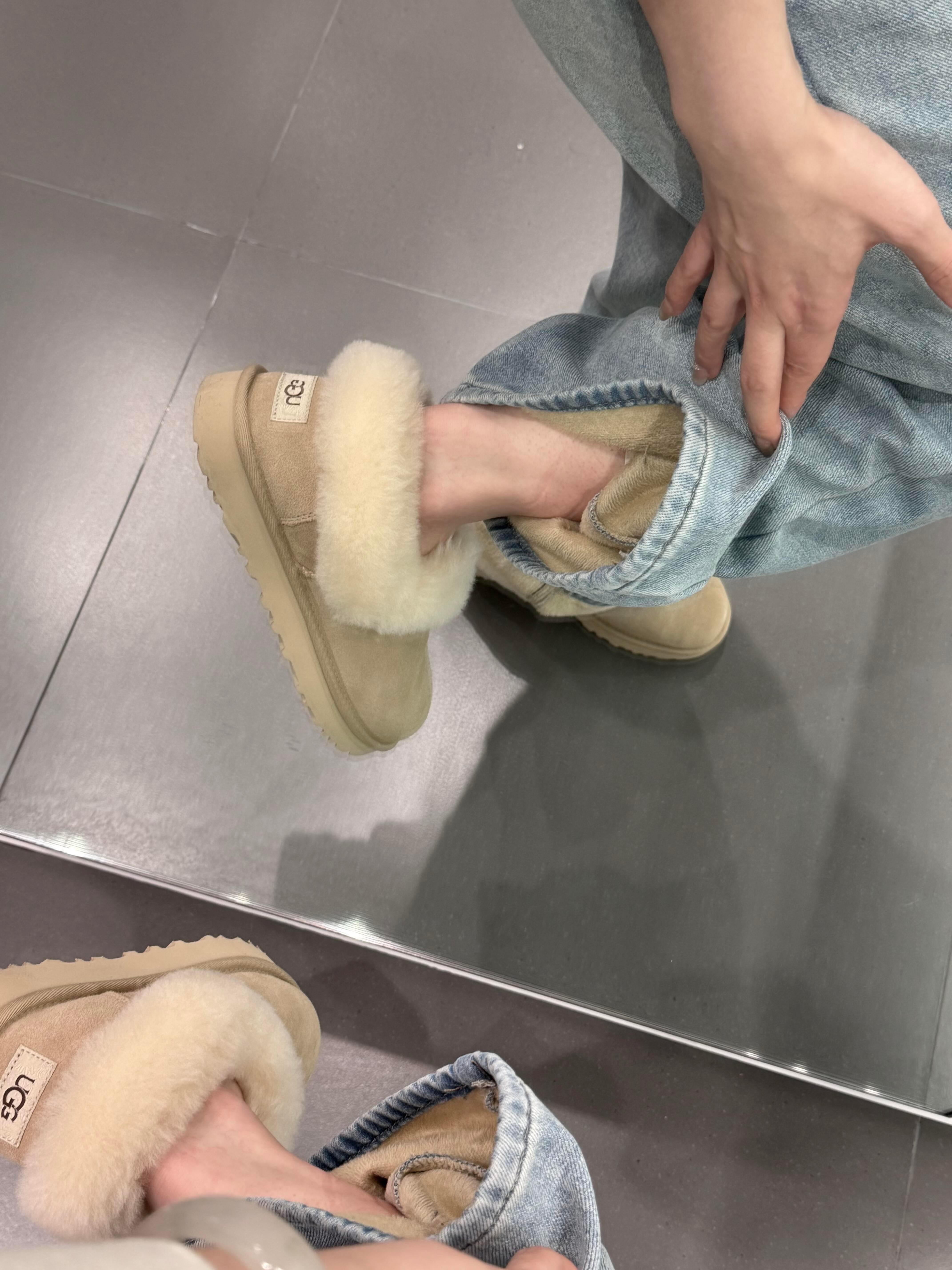 这是我试过鞋底子最软的鞋底子可能是新鞋的缘故鞋里毛毛巨暖和 !!!关键这沙色我真的太爱 特显白