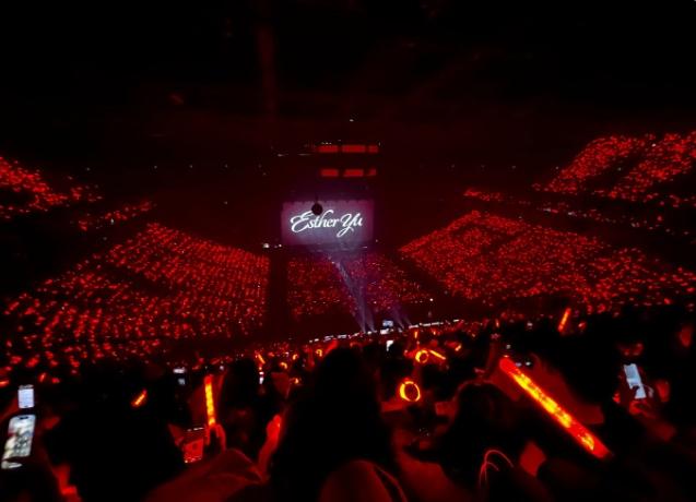 虞书欣生日会上座率还挺高的 演唱会的人看着比隔壁尖叫之夜的粉丝还多,最主要她确实