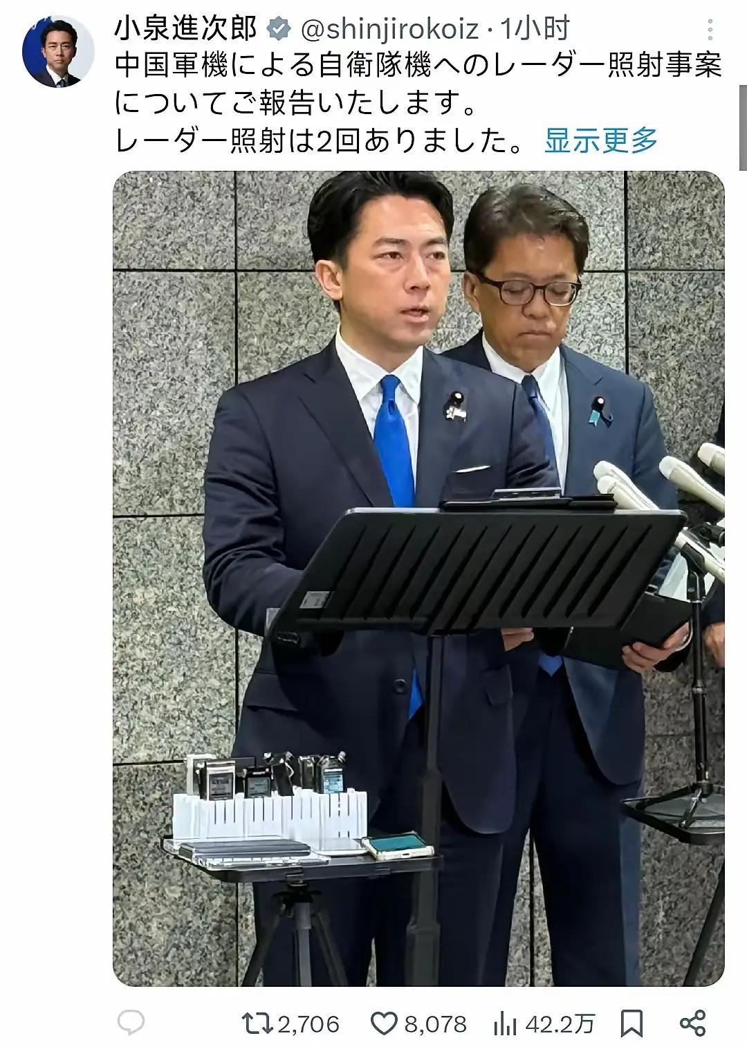 绝不能停听从日本的指令。今天(12月7号)下午,日本首相高市早苗针对昨天中国辽宁号航母编队的战斗机对日本自卫队战机进行雷达照射的情况正式表态。高市表示,日本已向中方提出强烈抗议,并严正要求中方防止此类事件再次发生。 同样在今天(12月7日)凌晨,日本防卫大臣小泉进次郎外紧急召开记者发布会称,“这属于高度危险行为,对此深表遗憾,并且对中方进行了强烈抗议,要求防止此类事件再次发生”。 请注意:高市早苗和小泉进次郎都在要求中方停止或防止此类事件再次发生。 如果我们停止了此类事件的发生,就等于听从了日本的指令。这种事绝不可以发生。 我的国:我们不仅不能停止“此类事件”再次发生,还要继续发生。而且,如果日本战机和军舰继续骚扰我们军演,必要时要勇于直接将其击落或击沉,看看日本又能奈我何?而对日本的强烈抗议,除了坚决拒绝没有任何选项。