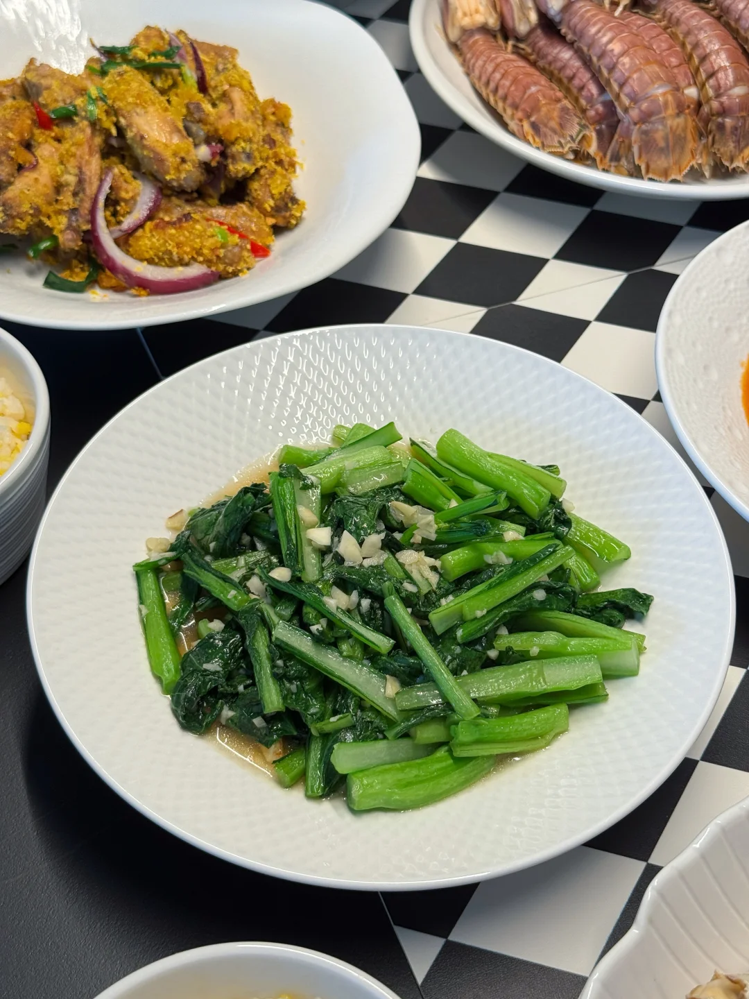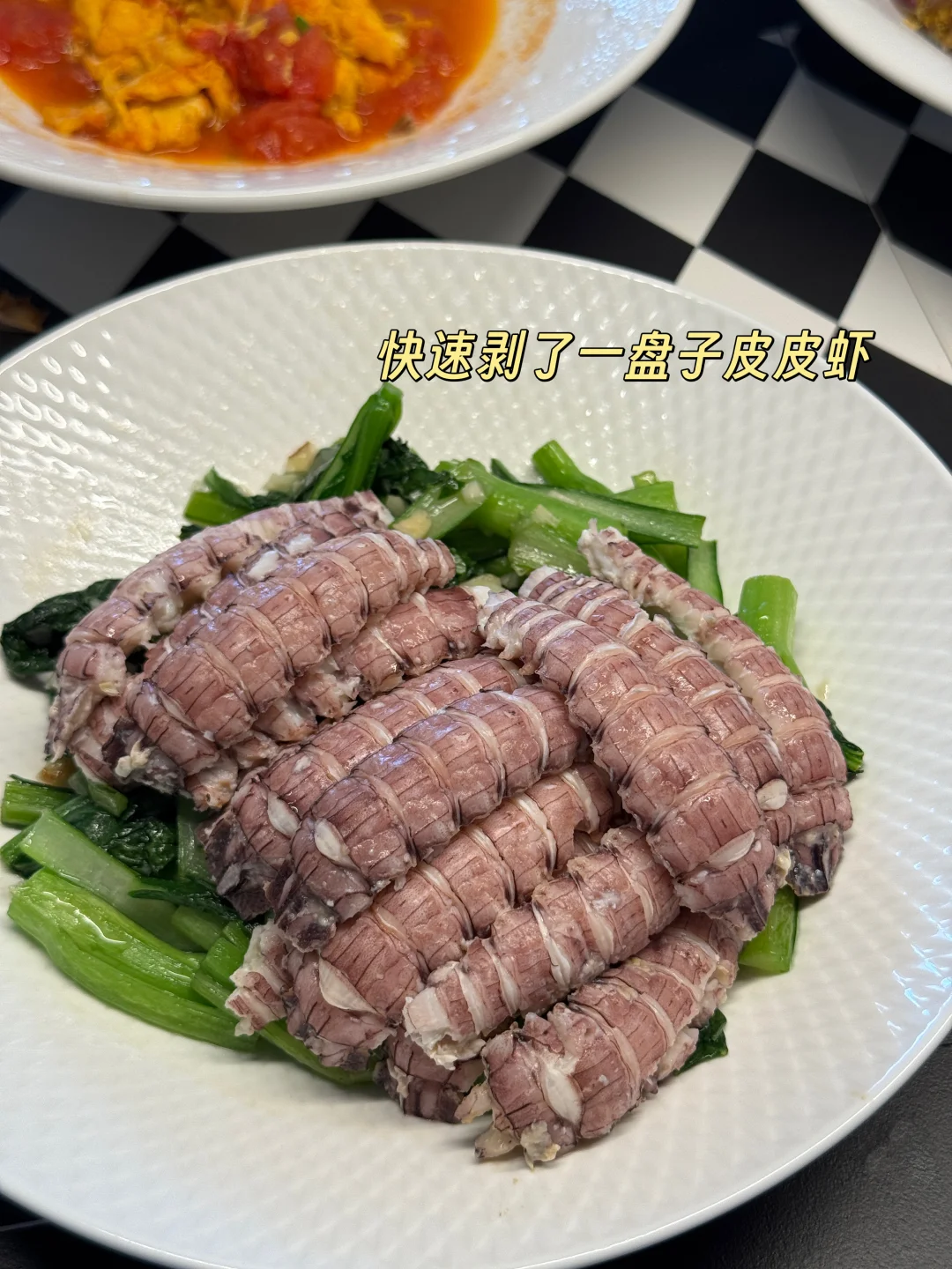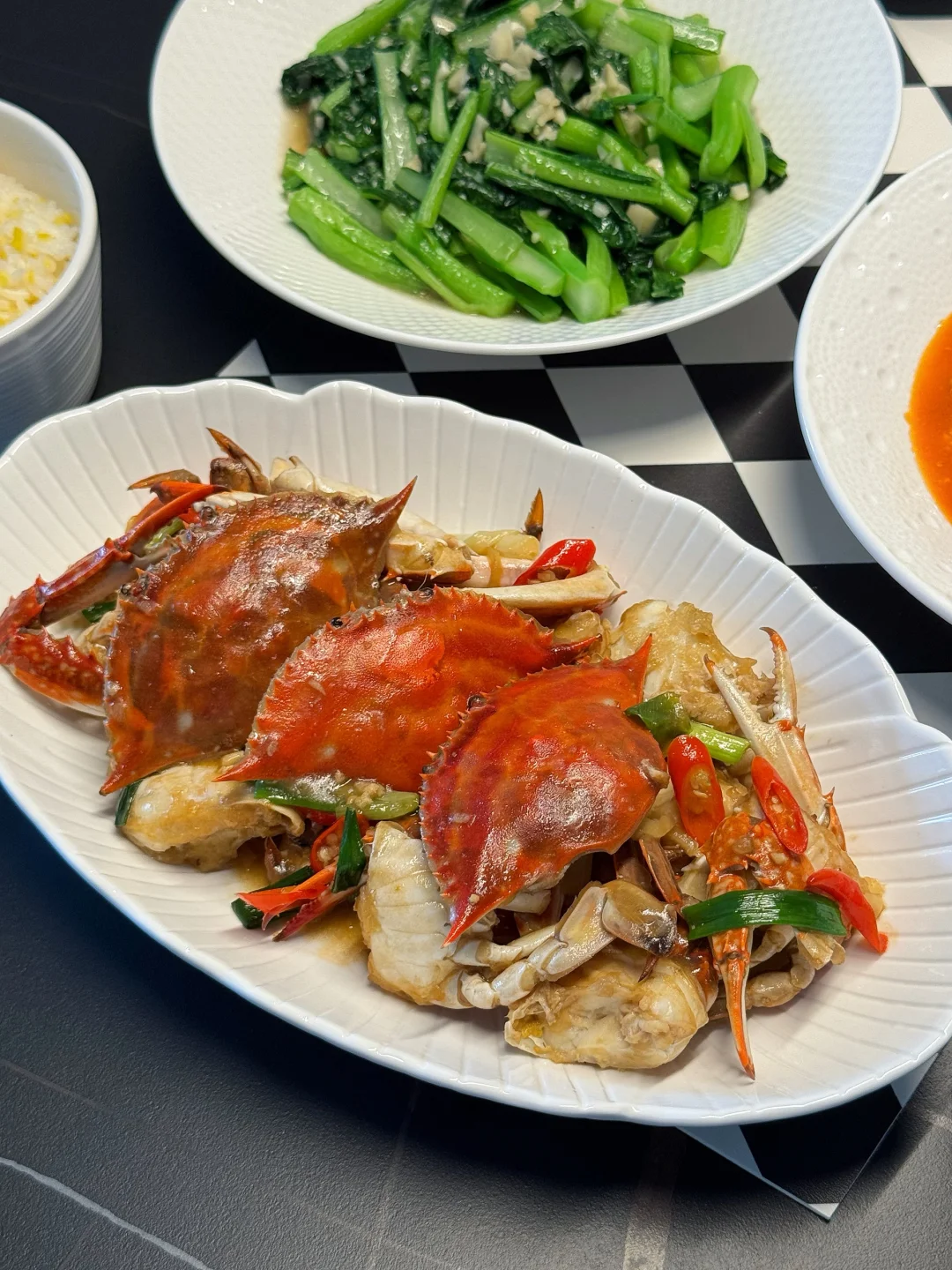 又到周五,提前祝大家周末愉快🥳 今日菜单: 🥢葱油梭子蟹 🥢蒜蓉菜心 🥢水煮皮皮虾 🥢西红柿炒鸡蛋 🥢蔬菜豆腐羹 🥢避风塘炒鸡翅 中午的时候朋友打电话送来的海鲜,自己家的梭子蟹、皮皮虾、八爪鱼,虽个头不大但是个个饱满,上桌后拿剪刀快速剪了一盘皮皮虾,被饭搭子们第一个吃光盘了……毕竟谁能拒绝不用剥壳、直接嗦肉的快乐啊!下次是不是该给梭子蟹也安排上“开壳服务”,看看它们会不会也被秒光😃