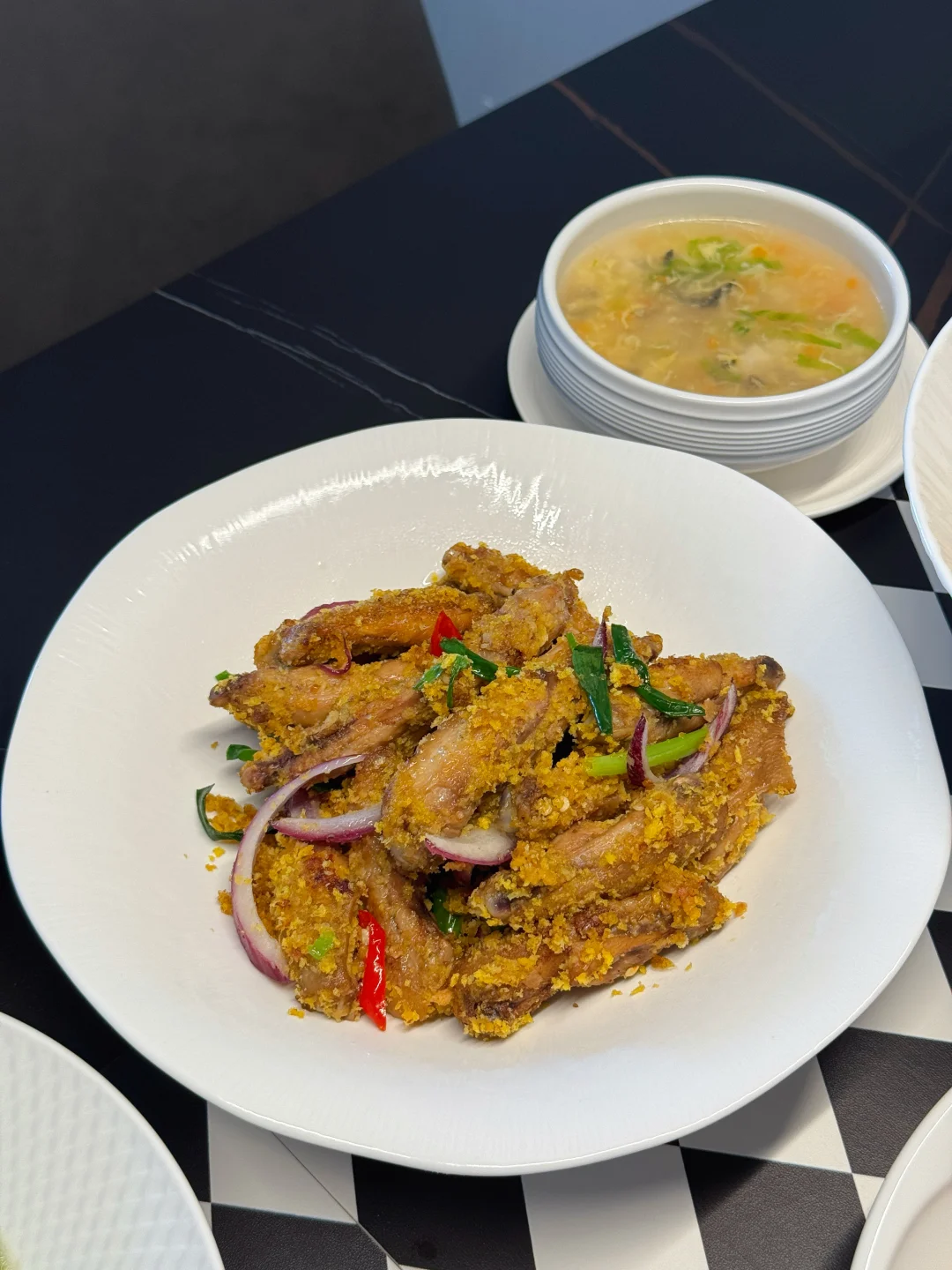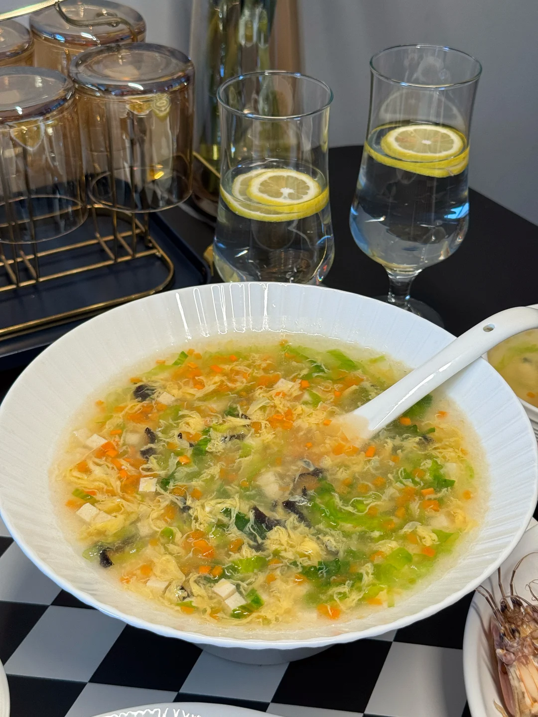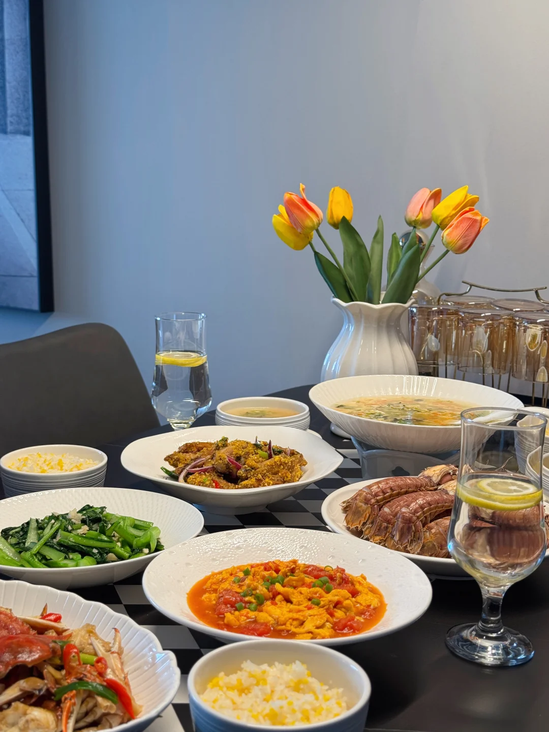又到周五,提前祝大家周末愉快🥳 今日菜单: 🥢葱油梭子蟹 🥢蒜蓉菜心 🥢水煮皮皮虾 🥢西红柿炒鸡蛋 🥢蔬菜豆腐羹 🥢避风塘炒鸡翅 中午的时候朋友打电话送来的海鲜,自己家的梭子蟹、皮皮虾、八爪鱼,虽个头不大但是个个饱满,上桌后拿剪刀快速剪了一盘皮皮虾,被饭搭子们第一个吃光盘了……毕竟谁能拒绝不用剥壳、直接嗦肉的快乐啊!下次是不是该给梭子蟹也安排上“开壳服务”,看看它们会不会也被秒光😃