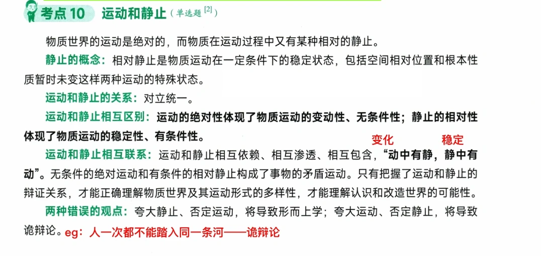 考点8 物质范畴及其理论意义 :恩格斯➕列宁 考点9 物质和运动 ——不可分割 考点10运动和静止——对立统一 考点11物质运动和时空——不可分割。时空的特点* 总结: 物质的共同特性——客观实在性 物质的根本属性(固有属性)——运动 物质的存在方式——运动 运动着的物质的存在形式——时空 人的存在方式——实践