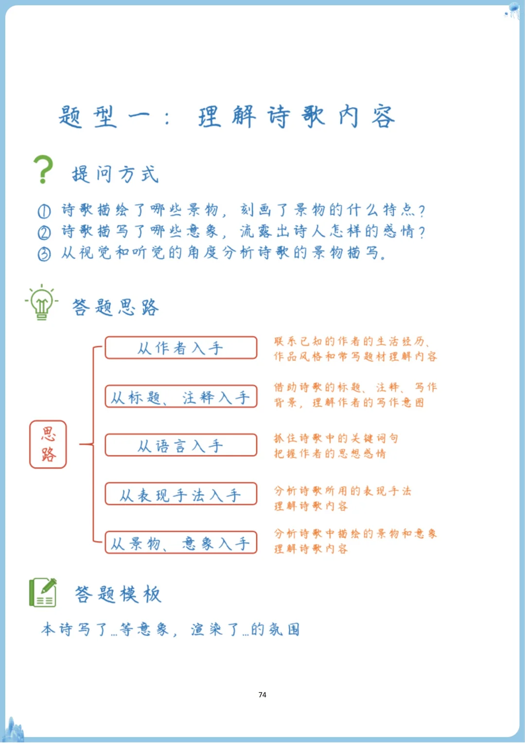 第2个背:背我总结好的古诗词7大题型的鉴赏技巧