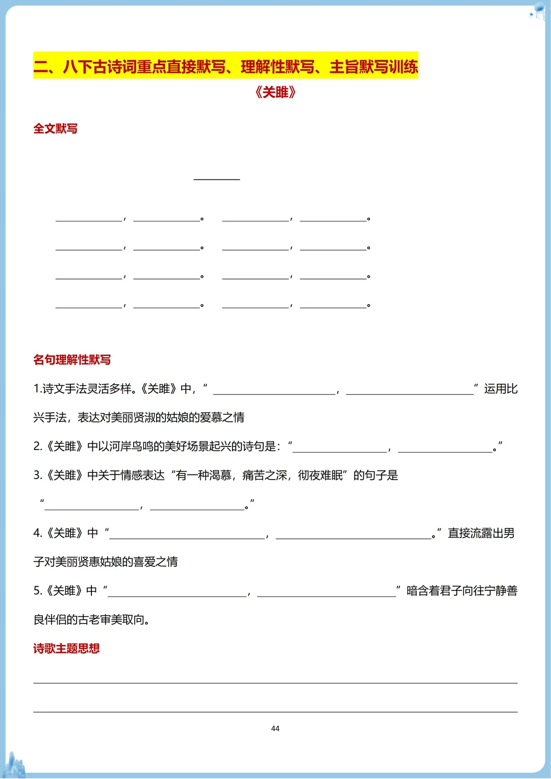 今天就来分享一下,2025八下语文期末考,古诗词板块该怎么有效复习才能拿到高分?