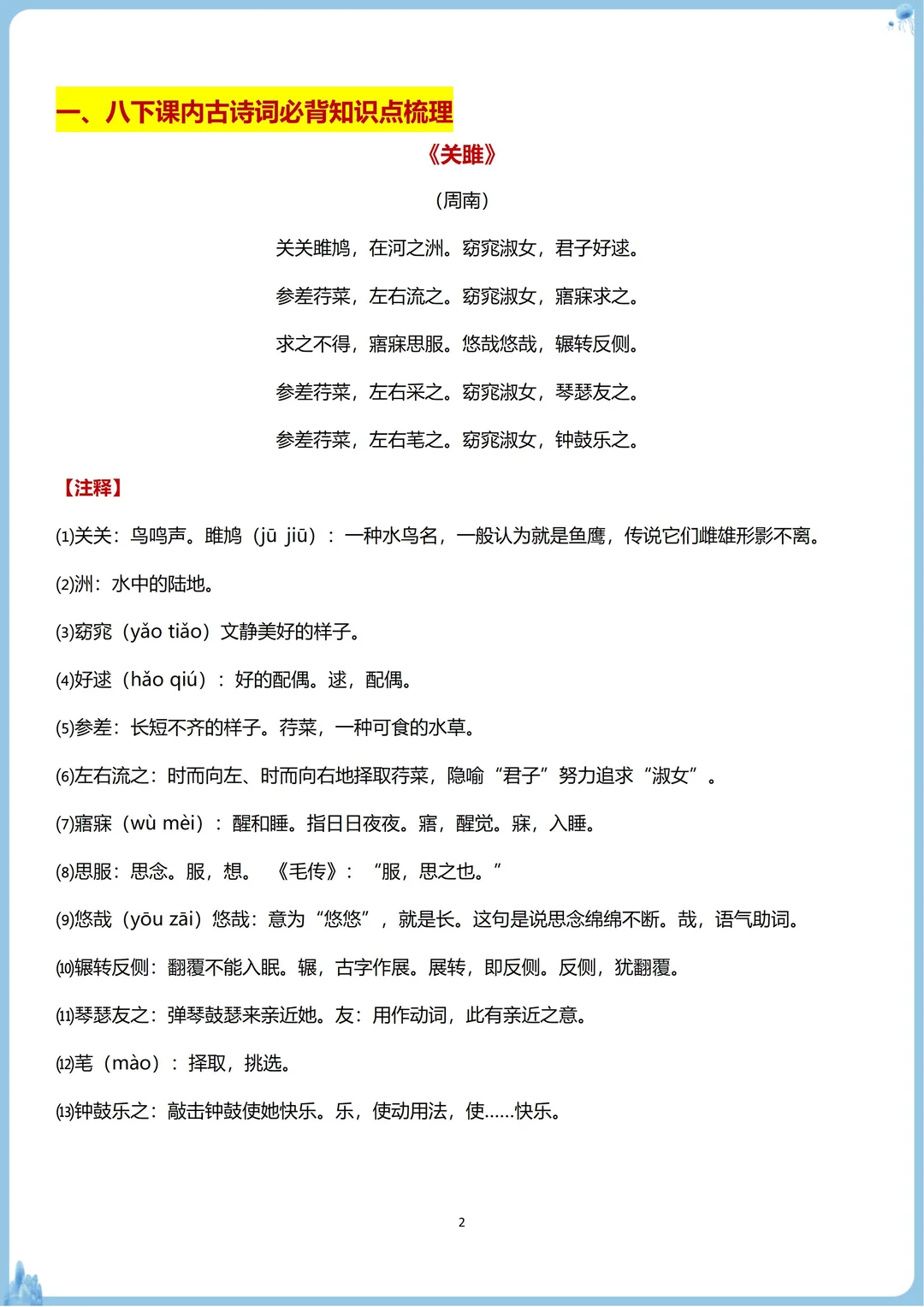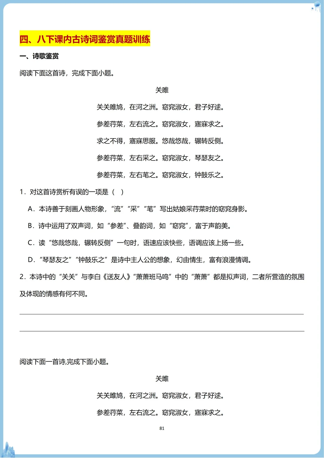 八下语文 八下语文期末考 八下语文古诗词 八下语文古诗词复习 八下语文期末复习 陪读妈妈 家有初中生 八年级家长