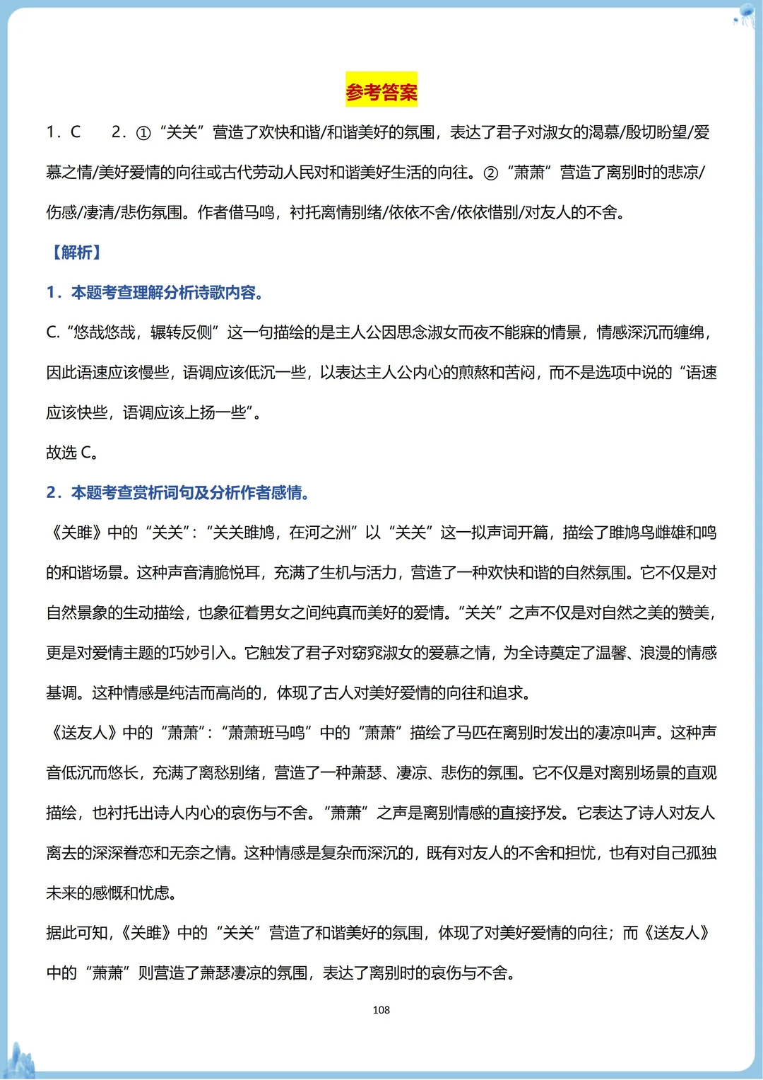 古诗鉴赏真题训练:每首诗都至少做一篇古诗鉴赏训练,考前提前学会运用技巧。