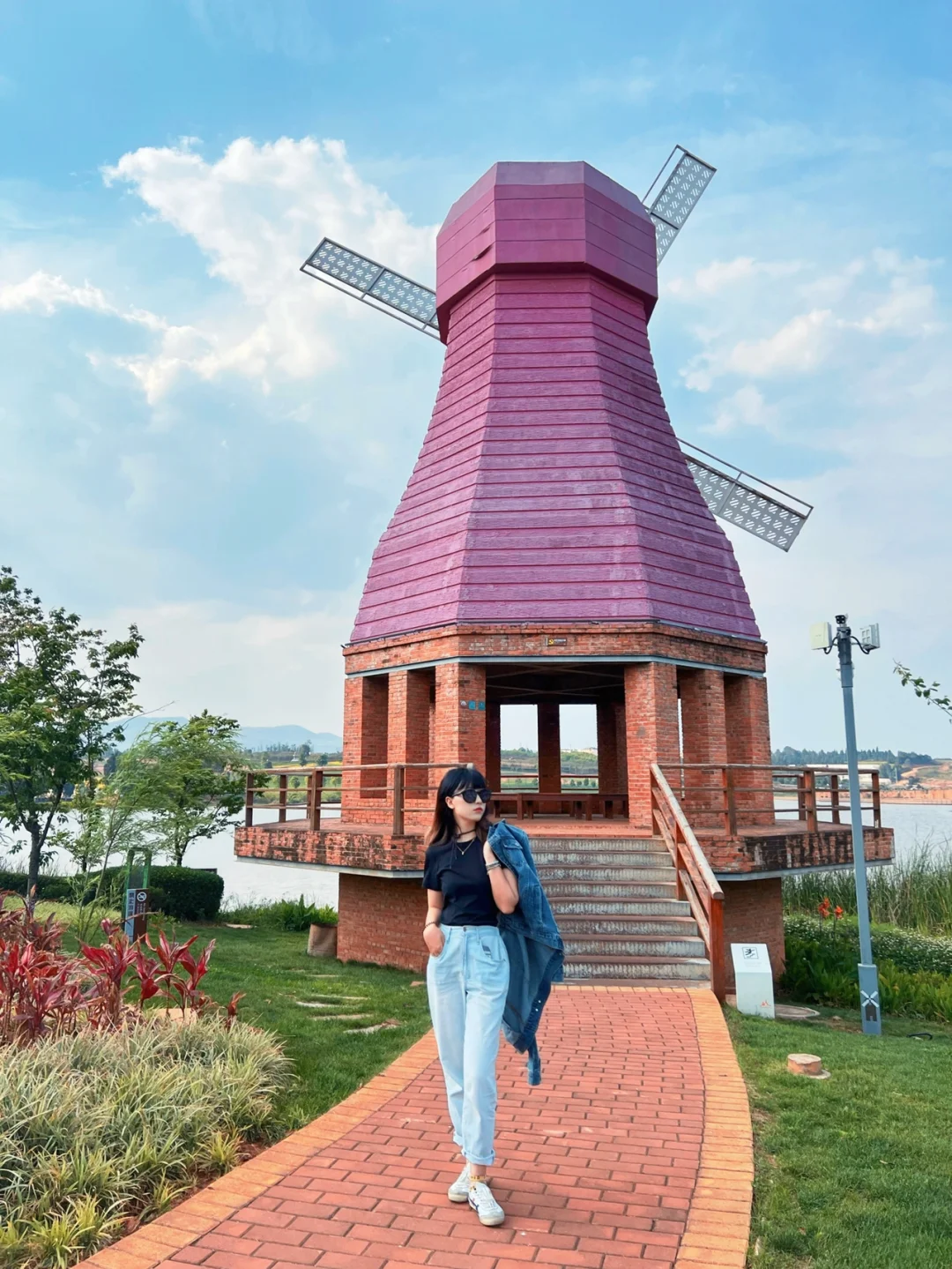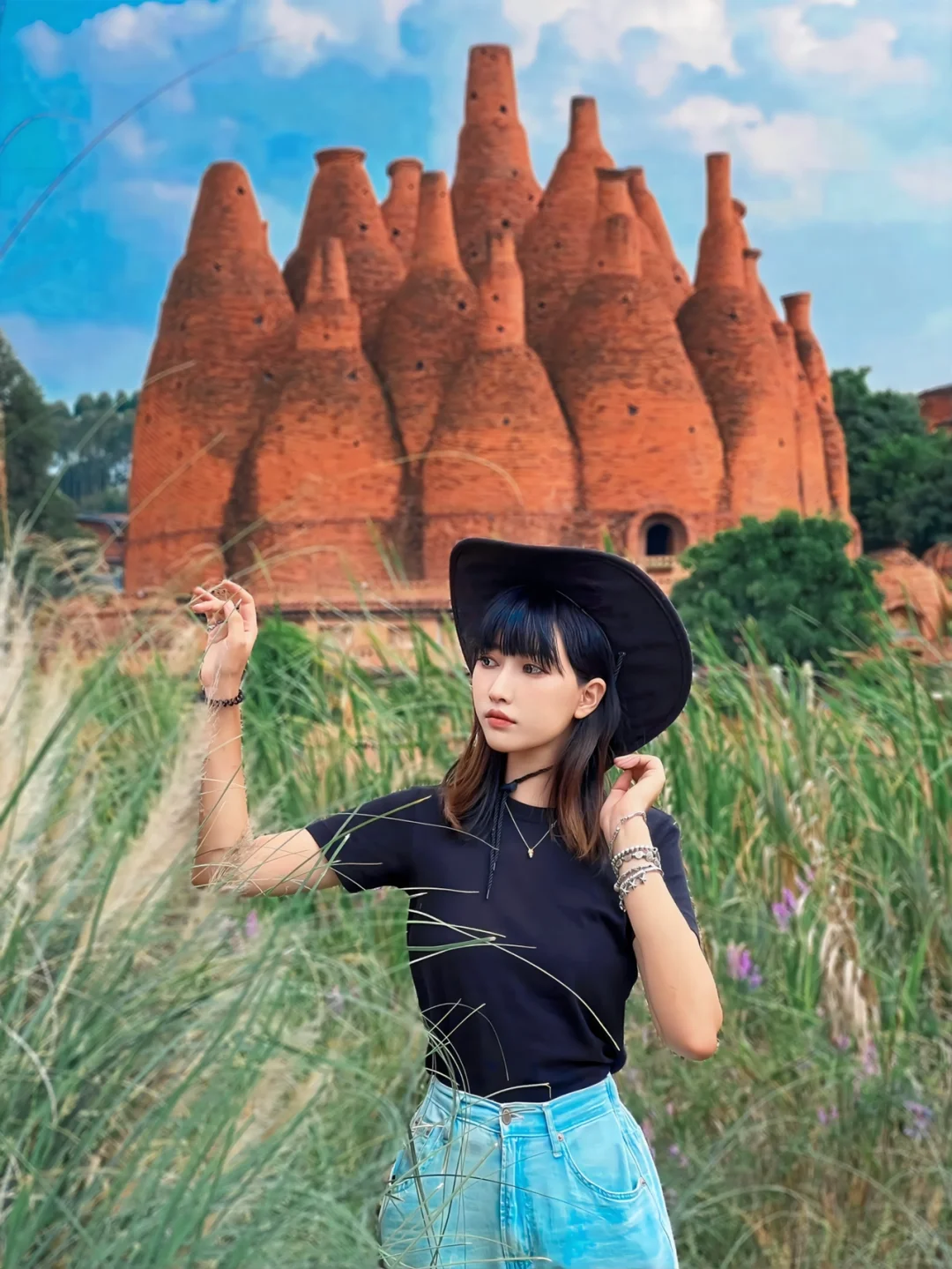2⃣️女生建议穿仙仙的裙子👗,黑⚫️、白⚪️、黄🟡、米色相对比较出片;最好搭配草帽👒,既能凹造型又能遮阳;