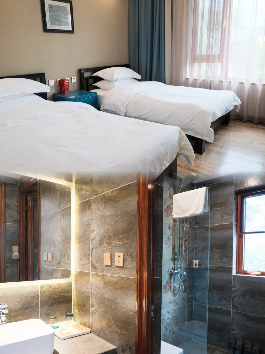 1⃣️房间很幽静,洗澡🛀水很热,夜晚即使下雨,隔音也做的很好;