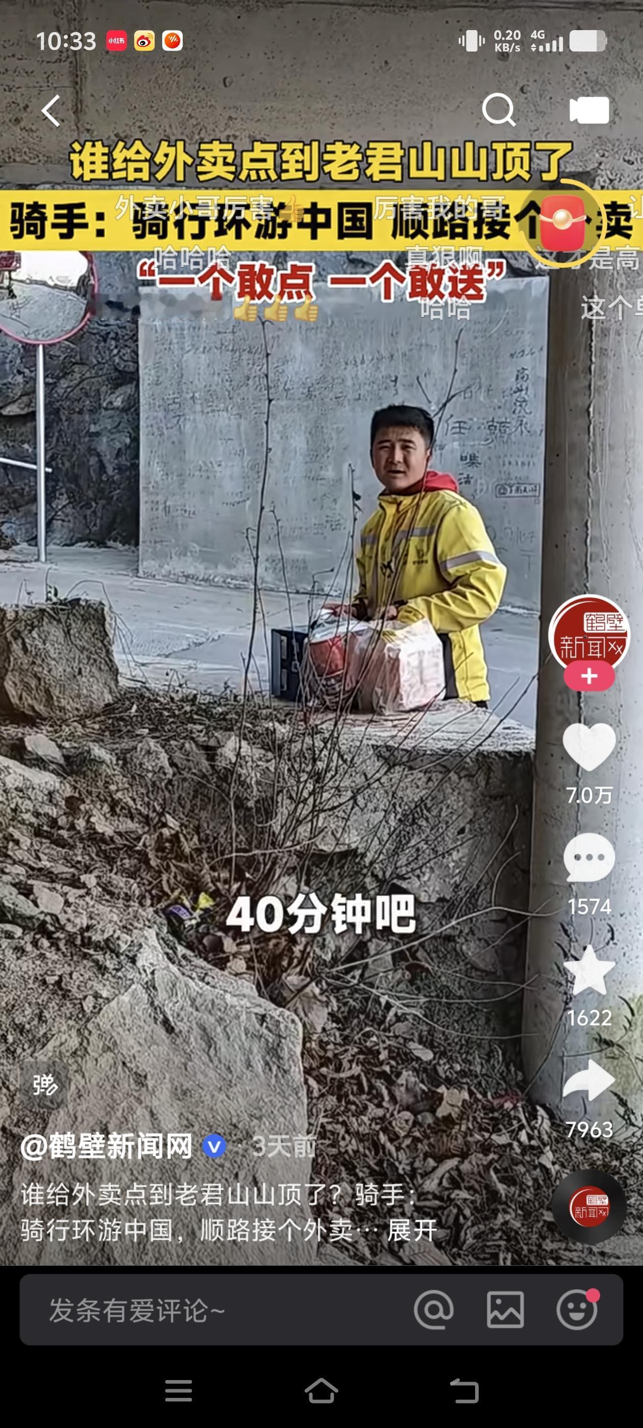 真是狠啊!点外卖点到老君山山顶。 一游客点外卖点到了老君山山顶,更狠得是真有小哥肯接单,采访小哥的时候,小哥说这单300还有100的门票,小哥面部表情也有点无奈,但还地接着上啊! 外卖 老君山 老君山旅游 奇境老君山 爬老君山 山东老君山 老君山旅游照 老君山爬山