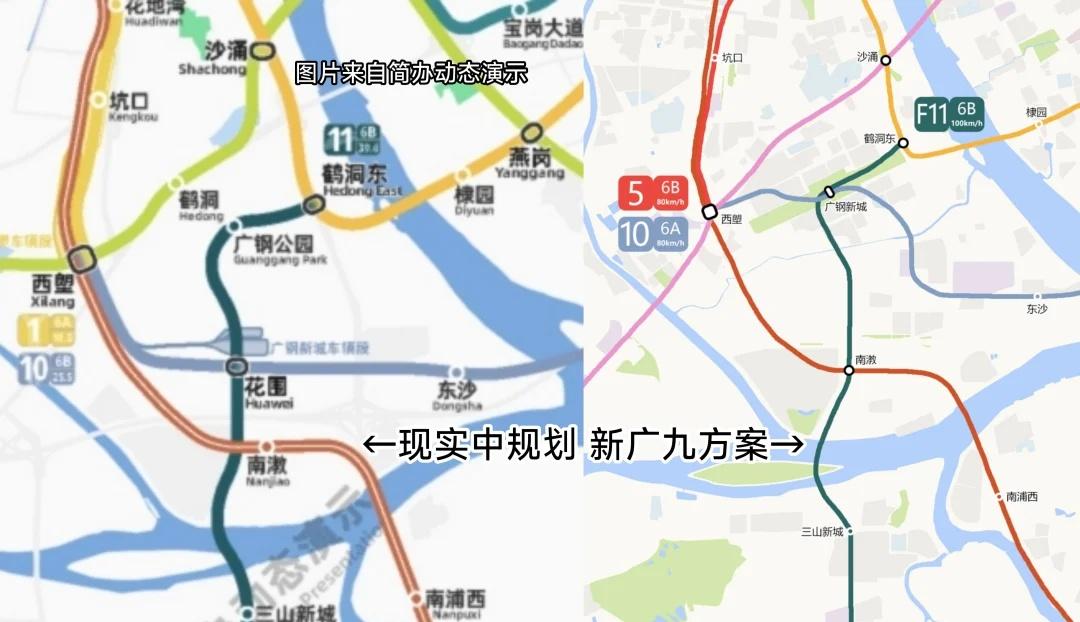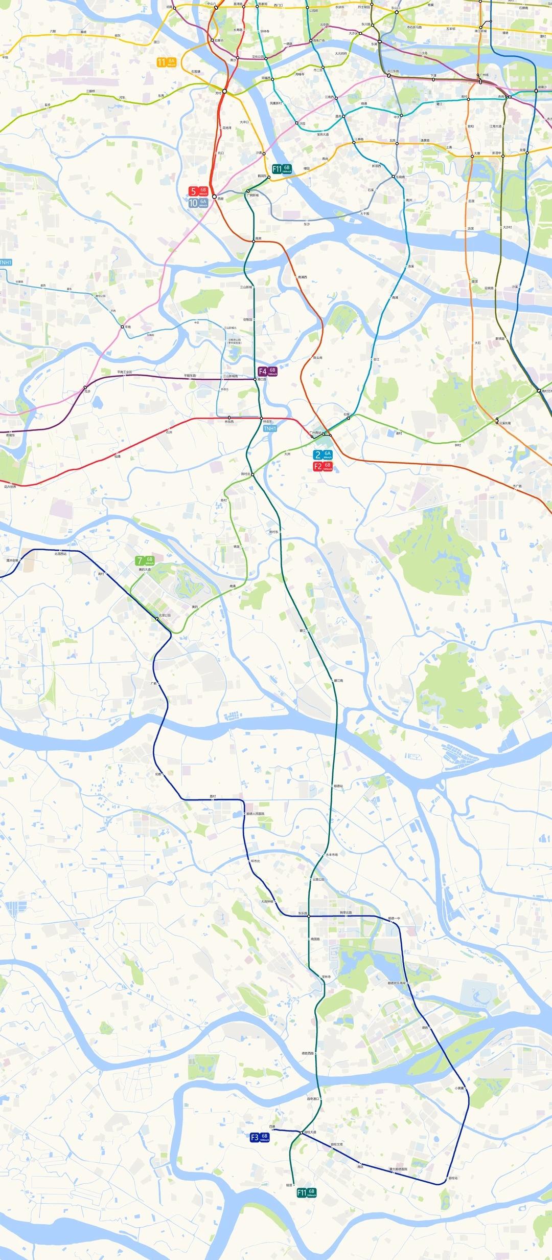 架空世界的佛山地铁11号线 如图是该架空2030年的线网图。佛山地铁11号线一期从容桂街道的细滘站开始,在容桂大道、东乐路站和佛山3号线换乘2次,一路向北到达荔湾区,以鹤洞东站为终点。 如图2,现实中,规划中的佛山地铁11号线在荔湾区只和广州地铁10、11号线换乘,碍于南漖和花围的站距太小,和22号线交而不换。新广九方案让10号线向北绕去广钢公园,在广钢公园设广钢新城站,10、22两站的距离变得适中,可以都与佛11换乘,提高佛11的通达性。 在新广九方案中,佛山3号线在顺德南部呈“𠃌”形走位,依次经过大良、德胜、容桂片区,提高覆盖面的同时也会导致地铁通行效率降低。因此,新修的佛山11号线拉直成近似直线,佛3换乘佛11后可以直线通往广州,无需换乘广7再换乘广3,提高通勤效率的同时还借助广11分流,缓解了广3的压力,一举两得。 城市交通规划 广州地铁
