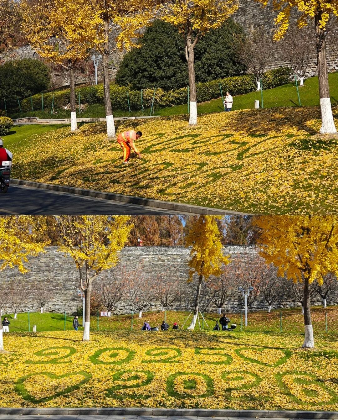玄武湖这个环卫大叔彻底火了 没来没见过这样的环卫大叔! 好多网友周末去玄武湖游玩,发现一个环卫大叔在用银杏叶写字,早上写的是2025,中午是2025❤️2026,南❤️京 还有其他形状的,太有爱了。平凡努力的劳动人民最可爱! 落叶铺成的温柔里,有人低头把日常揉成诗意 在这个普通的2025年的冬天,普通的我们,把每片落叶都过成了热爱的形状 让我们瞬间觉得这个冬天好温暖! 用落叶定格南京的美好! 感恩南京这么有爱的守护与创造!