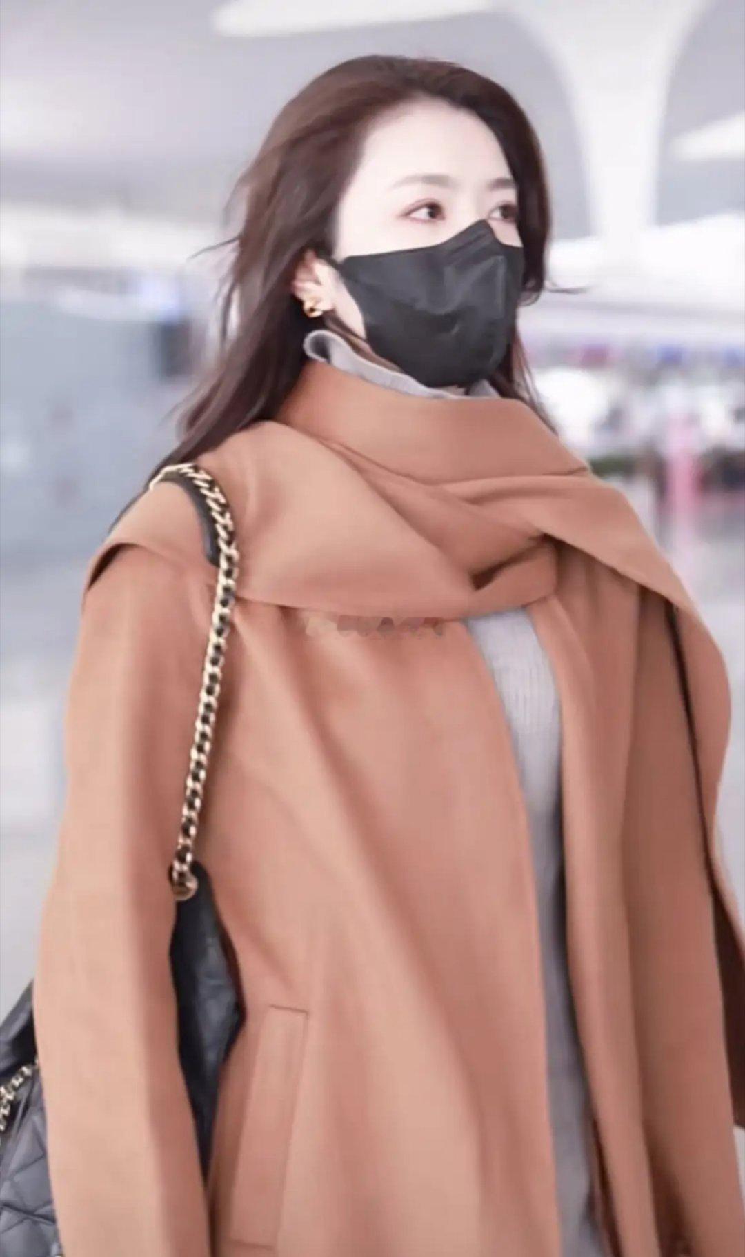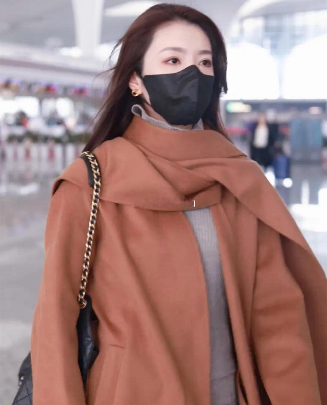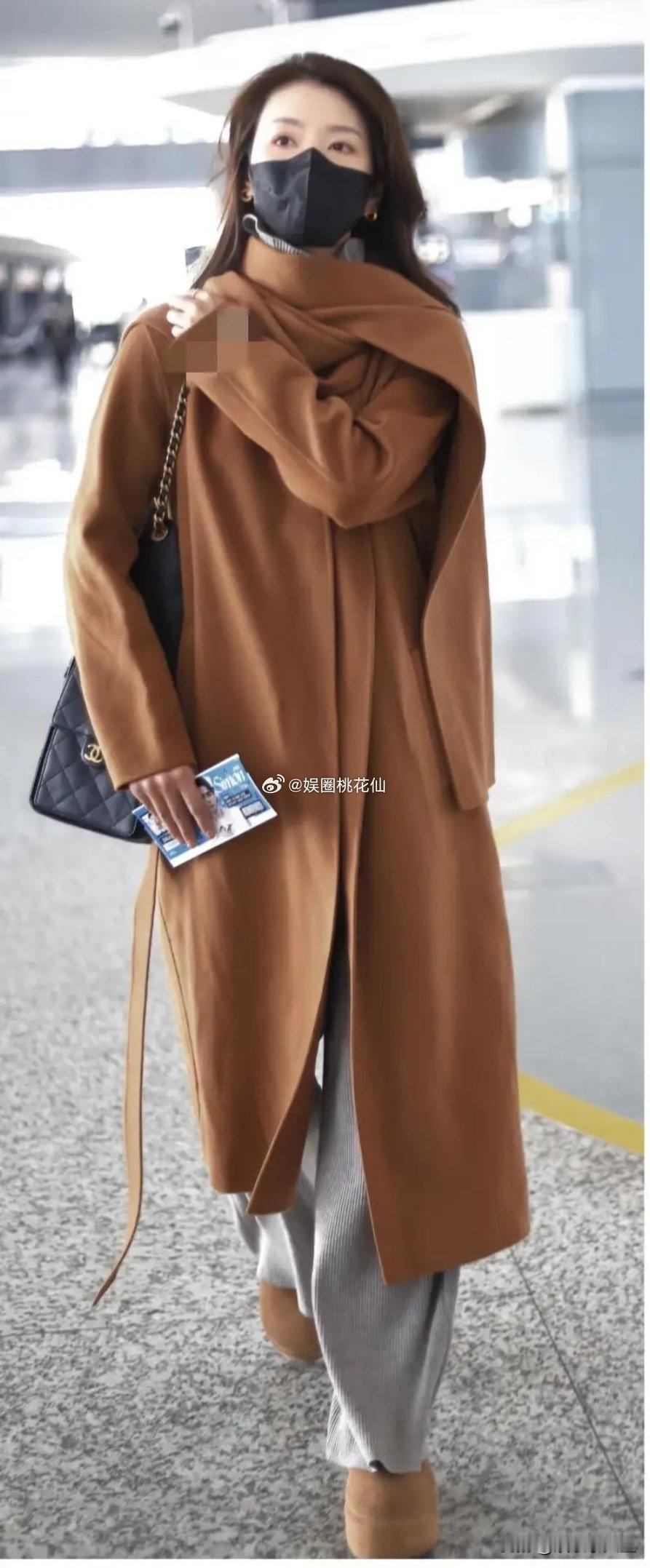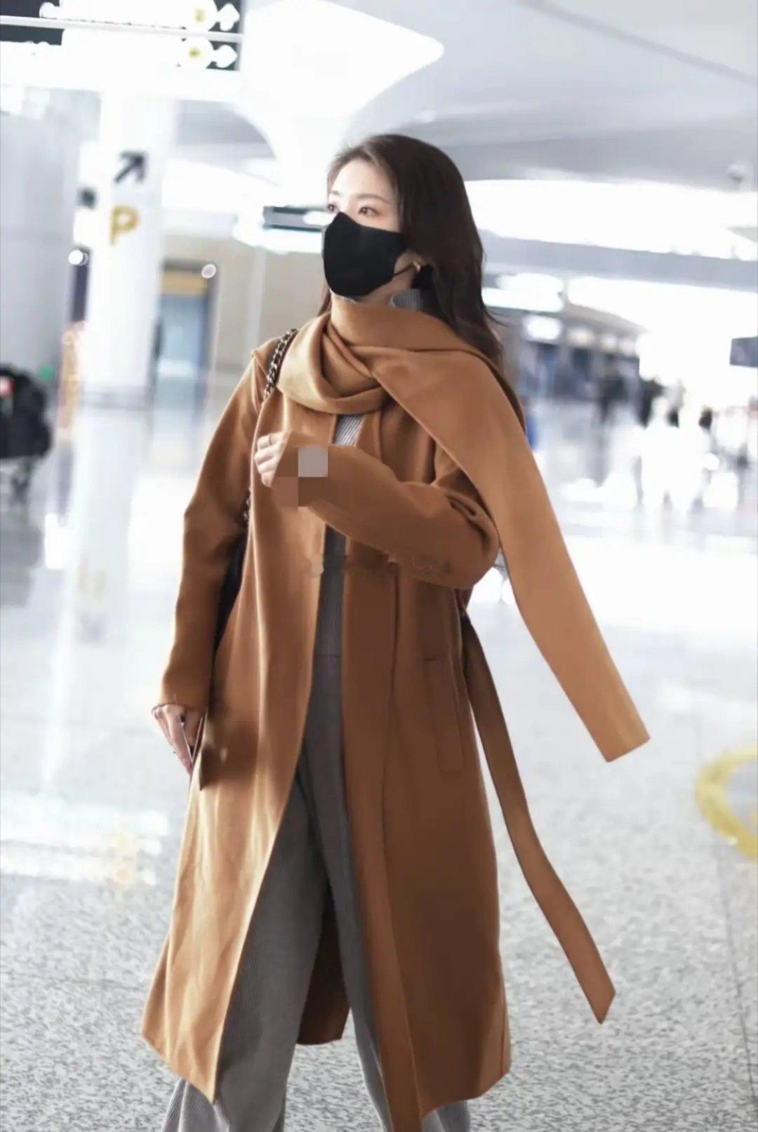 李云霄杭州机场被偶遇,穿棕色翻领长款大衣,温柔气质出众,美到犯规。