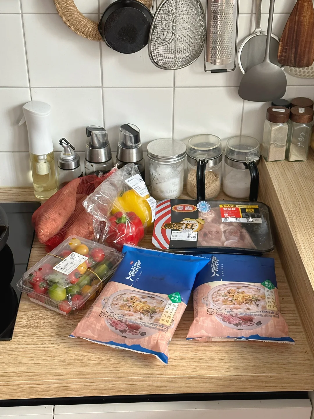 早餐搭配,总爱新旧结合:一碗怀旧馄饨,几片香甜红薯,一串实在的肉,一点清新的果,一杯醒神的咖啡。又是元气满满的一天!