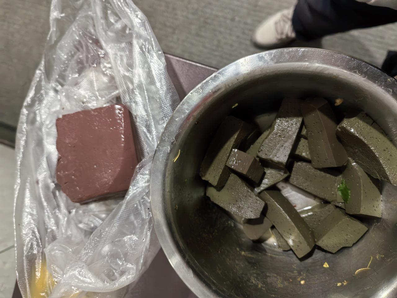 今天在家门口买了鸭血,回到家,一焯水,变成绿色了,看着怪吓人,问卖鸭血的人说,我焯水时间长了。 相机照出来的还算正常,但肉眼看确实是绿色,百度查了一下,说法各一,为了稳妥都扔了。 以后再也不买路边的东西了,真没安全感。