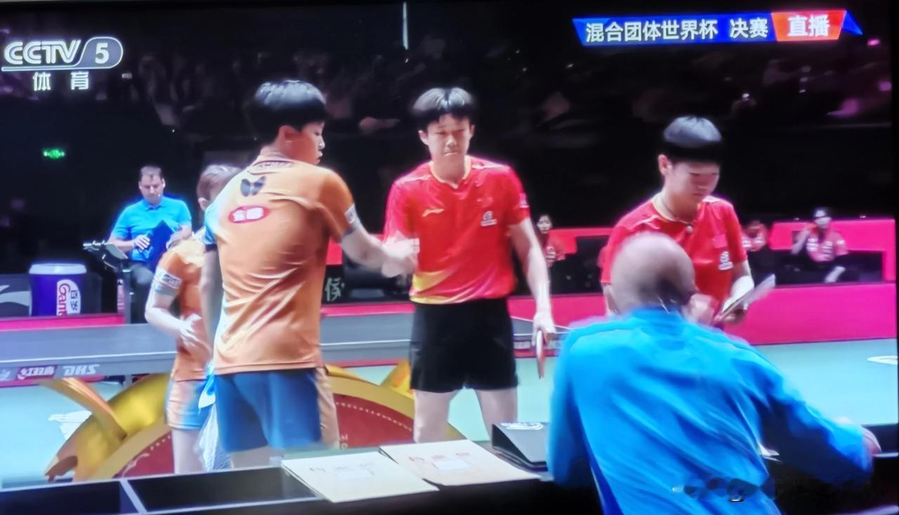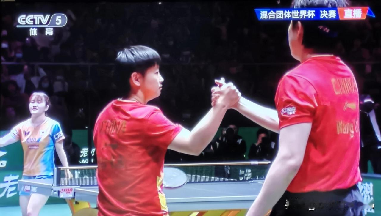 莎莎握着大头的手顺势又压了下来…这个握手,显得别致又普通低调又含蓄,意思只有两人能懂。 国乒的战术是以不变应万变。 因为在绝对实力面前,任何的排兵布阵都没有意义。 担当开路先锋的“双世一”一上场就把“碾压”进行到底, 松岛大藤始终处于找不到北的状态。一个哭丧着脸,一个苦瓜面。 拿下最后一分,莎莎和大头紧紧握手(图一),接着顺势把大头的手压了下来(图二)。这个握手动作饱含深意!