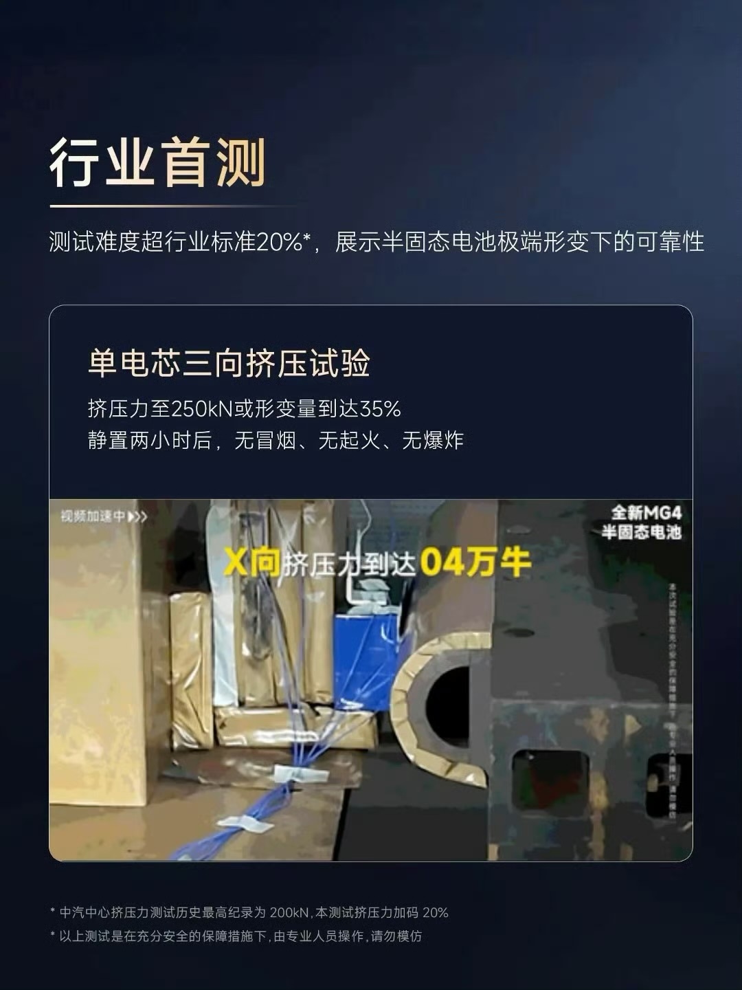 全新MG4半固态电池安全试验两项行业首测难度超行业标准20%👍🙌🏻直径10