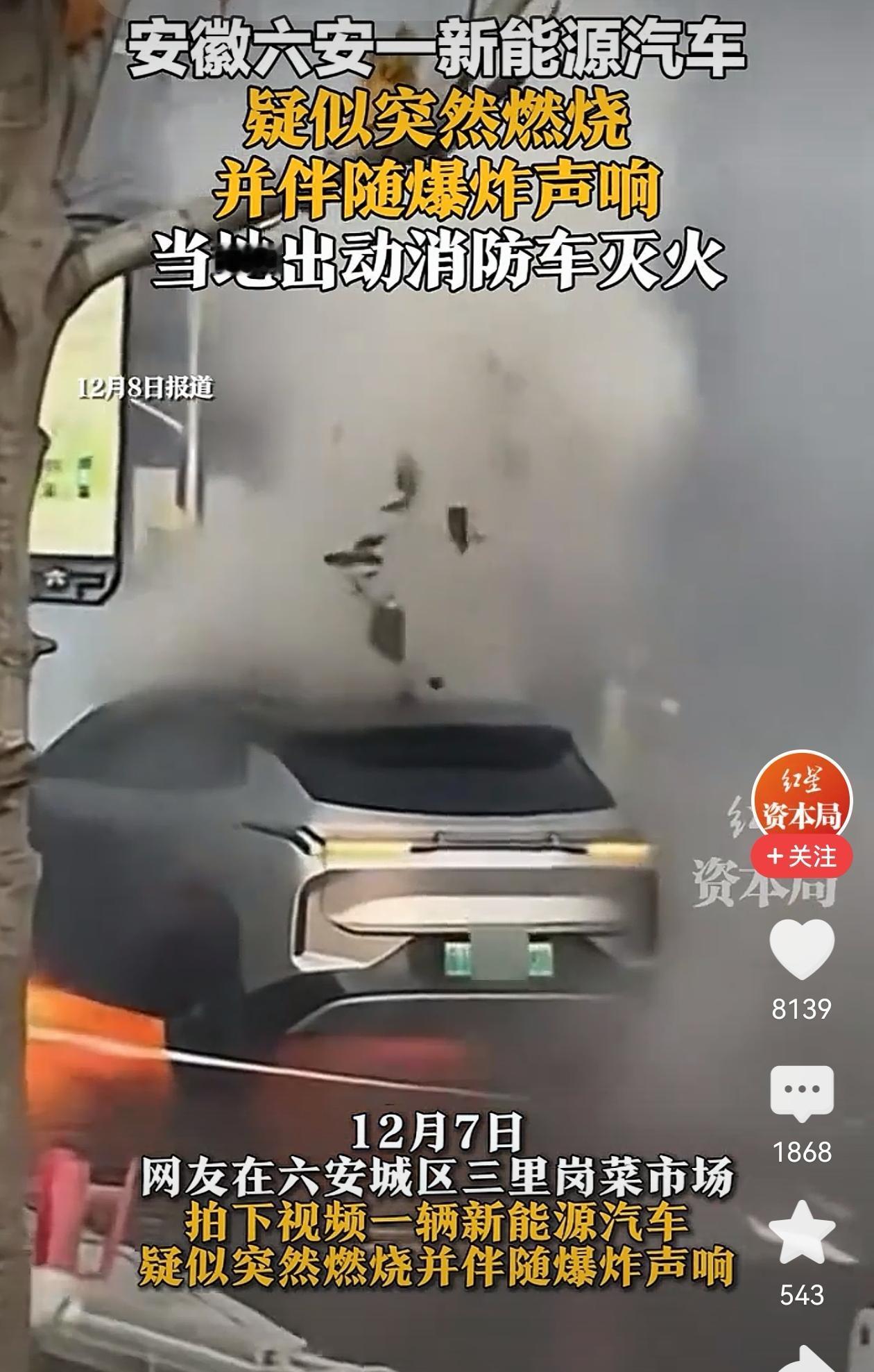 据多家媒体爆料,日前一新能源SUV在安徽被曝起火,并且现场视频亦有较大疑似爆炸声