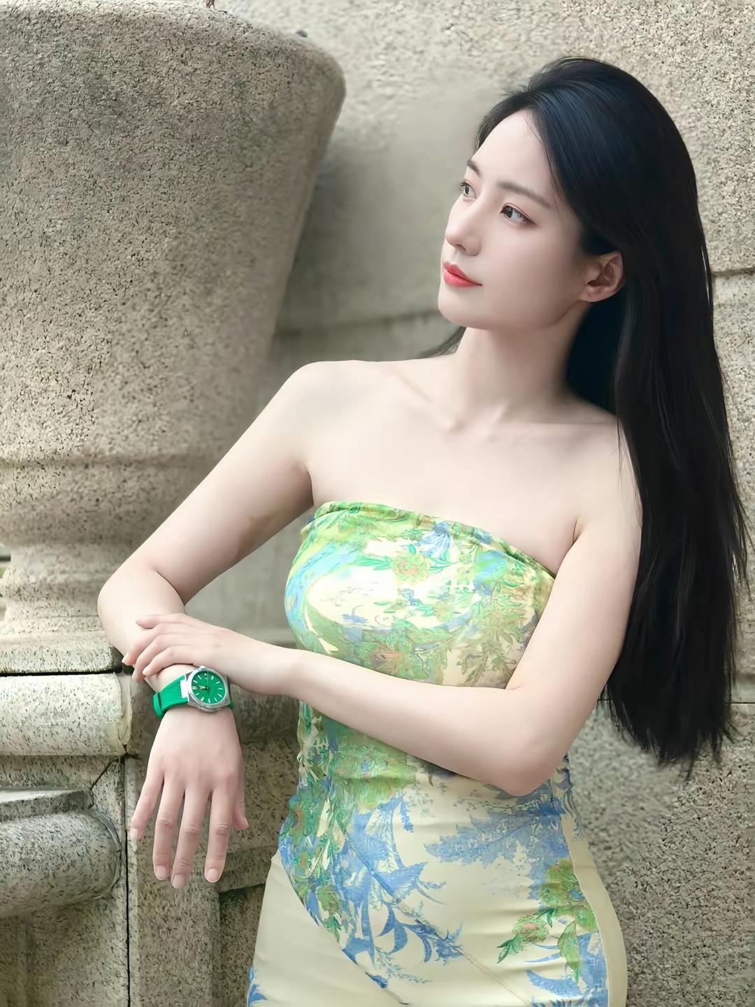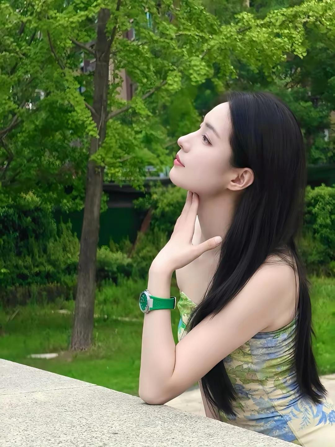 清冷系美人她站在绿意最浓处像一捧月光忽然有了形状