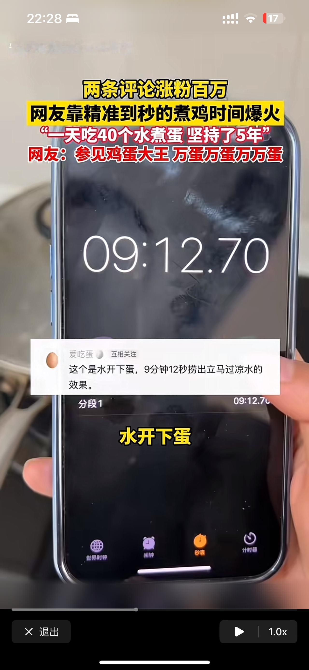 两条评论涨粉百万,小伙靠精准到秒的煮蛋时间爆火,被央视转发,网友直呼他鸡蛋大王。